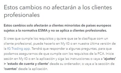 Otro al que le gustaría saber esos requisitos creando ese vacío legal.WallStreet escribió: 04 Abr 2018 17:12X-Trader escribió: 04 Abr 2018 16:53Confirmo la info que señala jda, aquí tenéis un pantallazo de IG explicando cómo hacerlo:jda escribió: 29 Mar 2018 10:23Hola a todos: