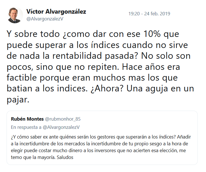 Pero la gestión activa digna de ese nombre —y de esa comisión— no va a desaparecer. Van a desaparecer los que no sean capaces de justificar la comisión.