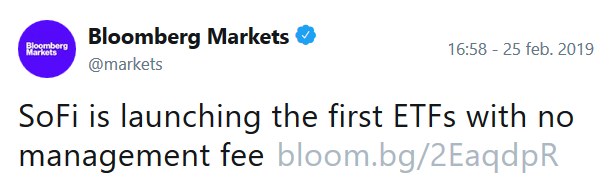 - Parece que el mercado de la gestión se está transformando y que las guerras de precios han llegado. Desde luego, la idea de crear vehículos de inversión sin comisiones para atraer inversores a una gestora me parece descabellada pero puede funcionar. Lo ideal sería crear vehículos que ofrezcan una rentabilidad anual pequeña pero con bajo riesgo (sacar un 1% anual por ejemplo) para atraer capital en lugar de replicar índices. En todo caso es un comienzo que seguramente transforme la industria al igual que ha pasado con la música, los taxis, etc.