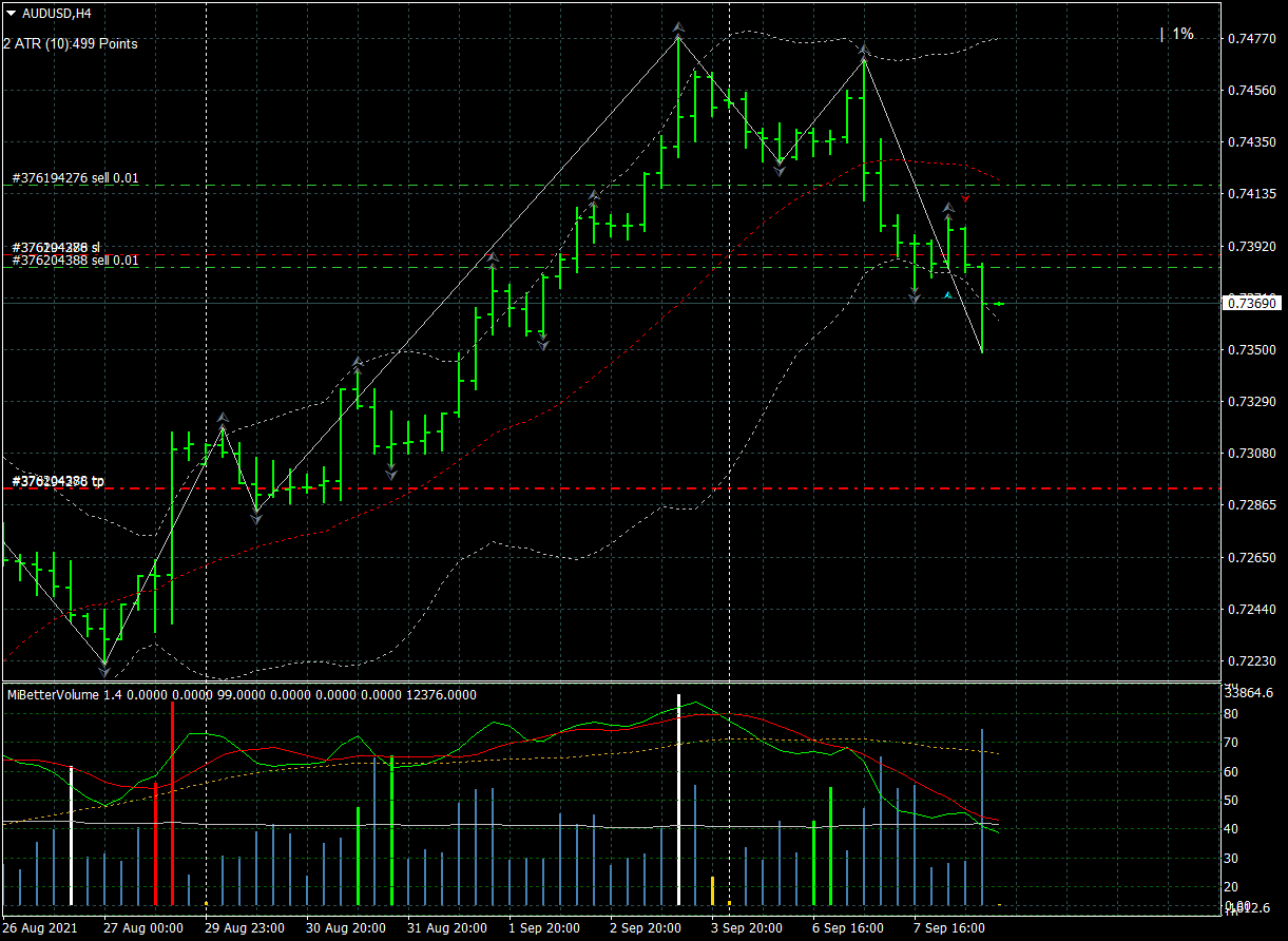 A falta de 45 minutos para el cierre de la barra de 4 horas, viendo volumen de parada me bajo a H1 para ver que está pasando ahí. Veo volumen climático, y con muchas dudas disminuyo la posición. Ahora estoy con el mismo tamaño que cuando entré al principio pero habiendo tomado algunos beneficios.