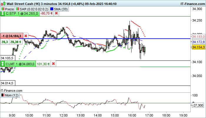 Volvemos a bajar stop loss a apertura negocio 34182...Ahora jugamos con el dinero del mercado.