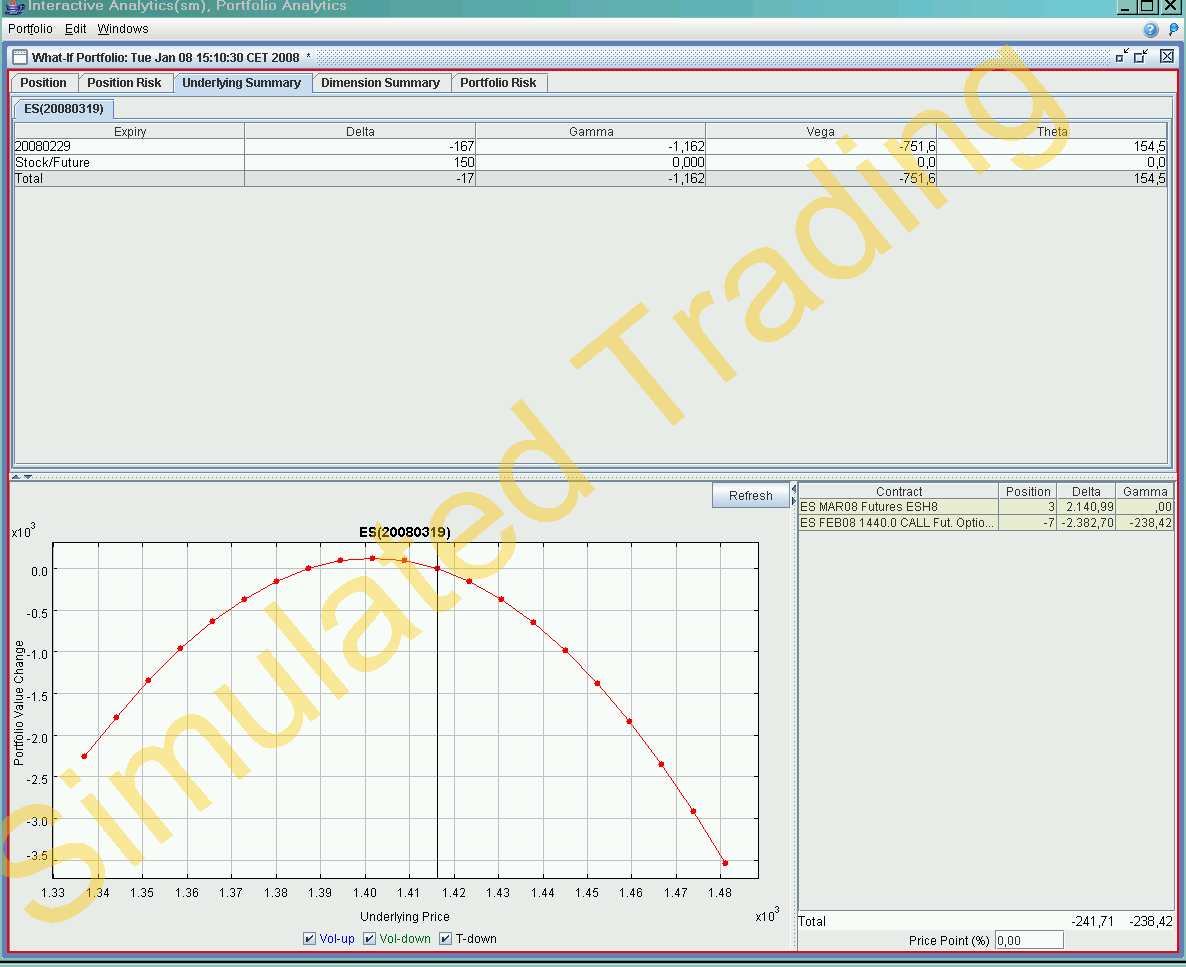 En cuanto a lo que has montado se me ocurre que refresque la delta y el grafico vaya a su vola.....por cierto vaya vega original de la posicion y la graficacion vaya por otro lado.....lo cierto es que utilizado poco el porfolio manager, mandaselo a los de la casa IB, a ver si te cuentan algo.