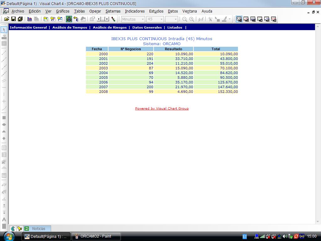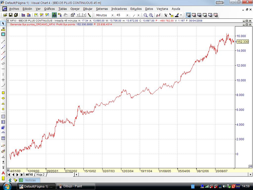 En barras de 60 minutos desde el año 2000 hasta ahora optine una ganancia de 126.960 euros, con 3 puntos de gastos. Aumentan las ganancia por año como ya dije a costa de hacer más operaciones.