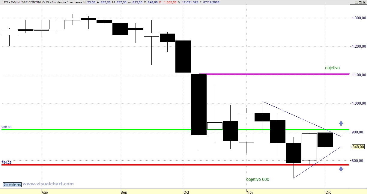 Sería importante que cerrara por encima de ese nivel, superando los máximos de ayer. De hacerlo creo que dejaría algun soporte importante a superar entre estos niveles y los mínimos de medio plazo, el 850-855.