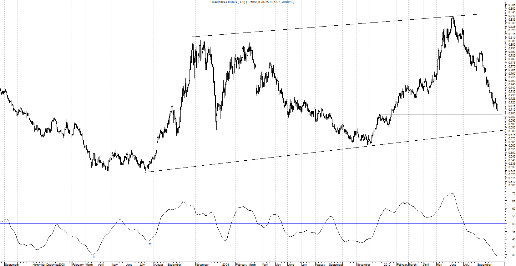 En mi opinión, y seré criticado, pero para eso están los foros, para debatir opiniones, el EUR/USD va a superar la linea de tendencia mensual llegando a valores de 1,45 -1,48, para después caer progresivamente hasta 1,15. Esta opinión es a día de hoy y dependerá mucho de las políticas monetarias y de empleo (no me sorprendería que salga , algún embrollo oculto en USA y que incluso traspase 1,50 para tomar una tendencia menos bajista y mas horizontal)