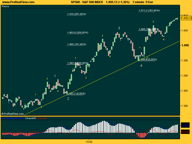 Corresto, de acuerdo completasmentes.Italia escribió:Por algún lado leí que se debía utilizar con un máximo de 144 barras.erredosdedos escribió: Y el oscilador de Elliott pues es mucho mejor para contar ondas. El problema es que no hay un timeframe fijo, sino que tienes que adaptarlo sobre la marcha para que te dé esa bajada en la cuarta. Claro, depende del grado, y de la velocidad del mercado. Miras a ver en movimientos anteriores impulsivos y vas calibrando, en fins.