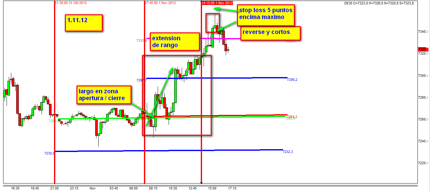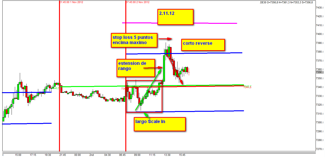 El dia 26.10.12 he empezado de presentar en el contexto de Cortos Continuos una Escalera de Exito a partir de un precio del FDAX de 7400.