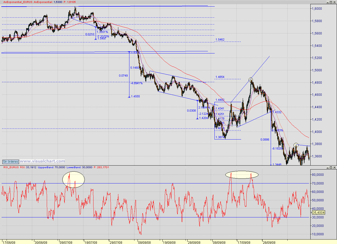 Pos yo lo veo clarito, clarito. Esto no para de bajar hasta 1,18, te acuerdas spirit del macro hch del que hablamos en su día? y si me apuras tengo un fivo por ahí que me lo manda a 1,04. Después ya veremos pero seguramente habrá corrección gorrrrda o quien sabe, ¿un cambio de tendencia quizás?. Ea, corrrrtos un poquito más :-D. De momenti paradita en 1,2250 pa formar la siguiente figura bajista que no sé por qué me da que será un triangolo, juas, juas, juas. Si es que esto está mamao de figura en figura y tiro porque me toca. El objvo bajista viene dado por cada figura y el objvo correctivo susiguiente se calcula de forma bastante aproximada con un fivo (1,6 o 2,6) desde el suelillo (que siempre está cerca del último objvo bajista). Lástima que me falte el autocontrol y encima no tenga un duro que si no... en fin una pena desperdiciar un momento así porque estoy seguro de que vamos a tardar en ver, si es que lo volvemos a ver algún dia, un mercado tan alucinante como este y... joooder!!! ya podíamos habernos retirado en estos meses. En fin, por lo menos vamos aprendiendo de que va esto y el autocontrol ya llegará, nadie puede equivocarse en lo mismo eternamente.