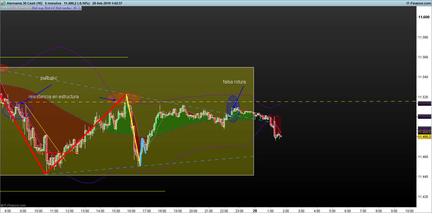 Acto seguido a las 8,30 marcan el pullbakc tras la rotura, ese patrón es muy fiable siempre que se den esas condiciones aunque sea contratendencia siempre que el mínimo de sesión anterior este distanciado lo suficiente para entrar en la operación porque si hay un soporte cercano no se entra que es lo que ocurría arriba ( resistencia en estructura cercana que no rompió y se giro)