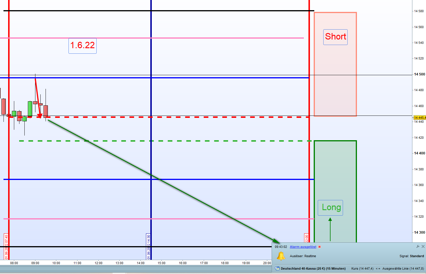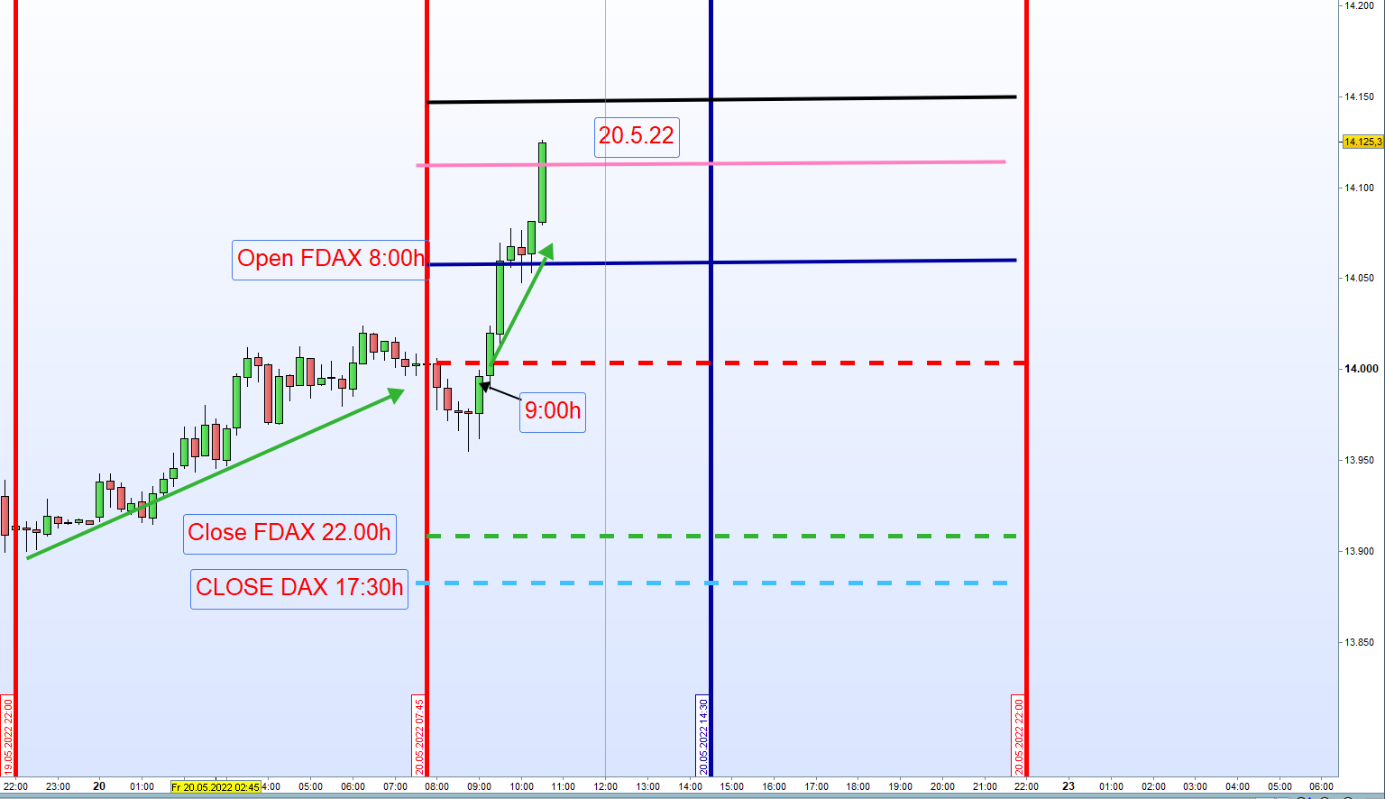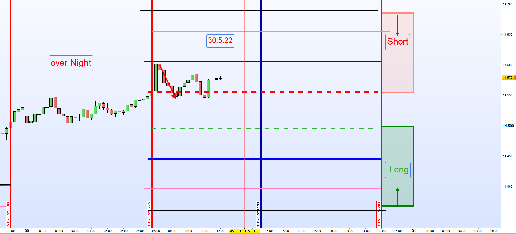 Ayer el corto tanto para el DOW y FDAX era la zona ma alta del dia y se veia que el preciso no podia alacanzar el cierre del dia anterior. Sentido comun que tambien es parte de la estrategia para avanzados.