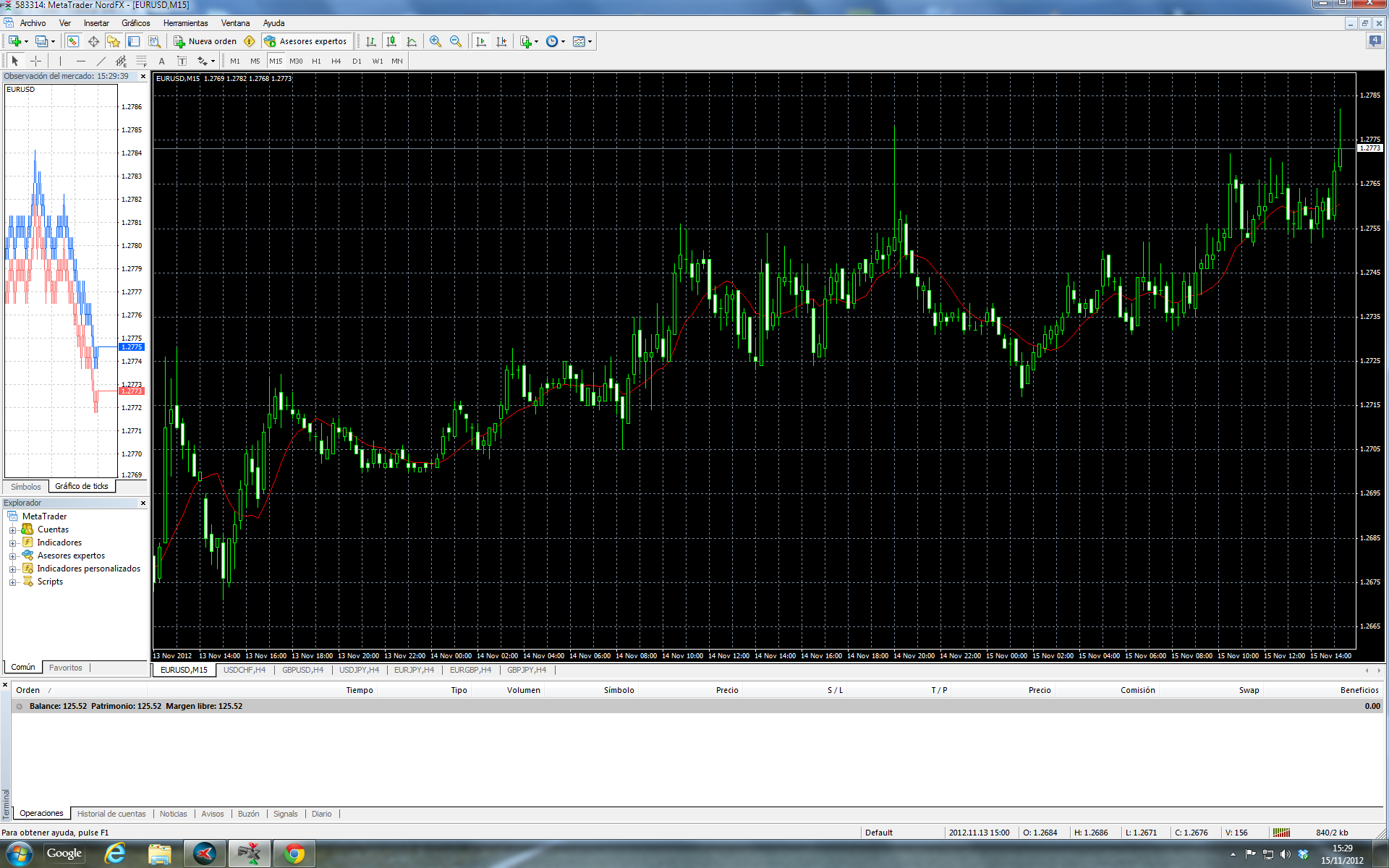 Bueno, a pesar de tener como objetivo principal el 1.5850, hacemos caja en la libra, ya que tambien voy corto en el euro. Mantengo el euro bajista con stop en BE desde 1.2755, observando la reacción en 1.2725 y con posbile objetivo 1.2700.