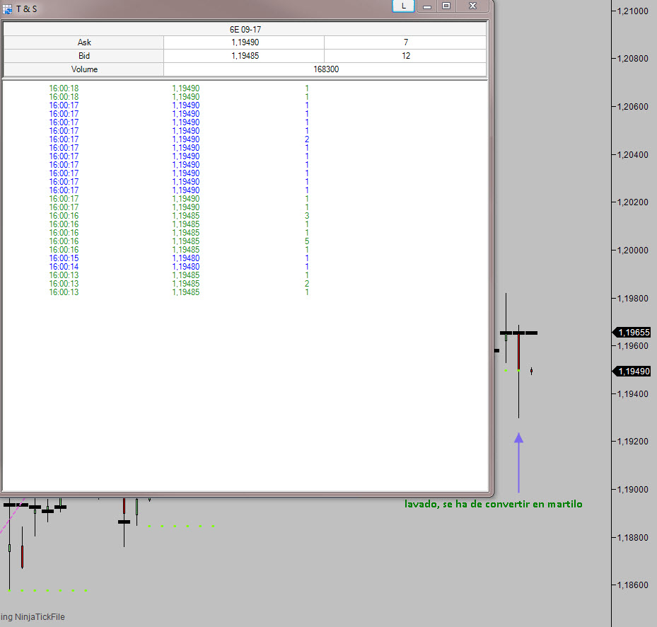 Cuando conjeturas sin tener modelizaciones, esa vela puede acabar de mil maneras, pero cuando generas un modelo .. logicamente en un timeframe pequeño, sabes que esa vela va a acabar en un lavado para colgar a los vendedores durante un tiempo.