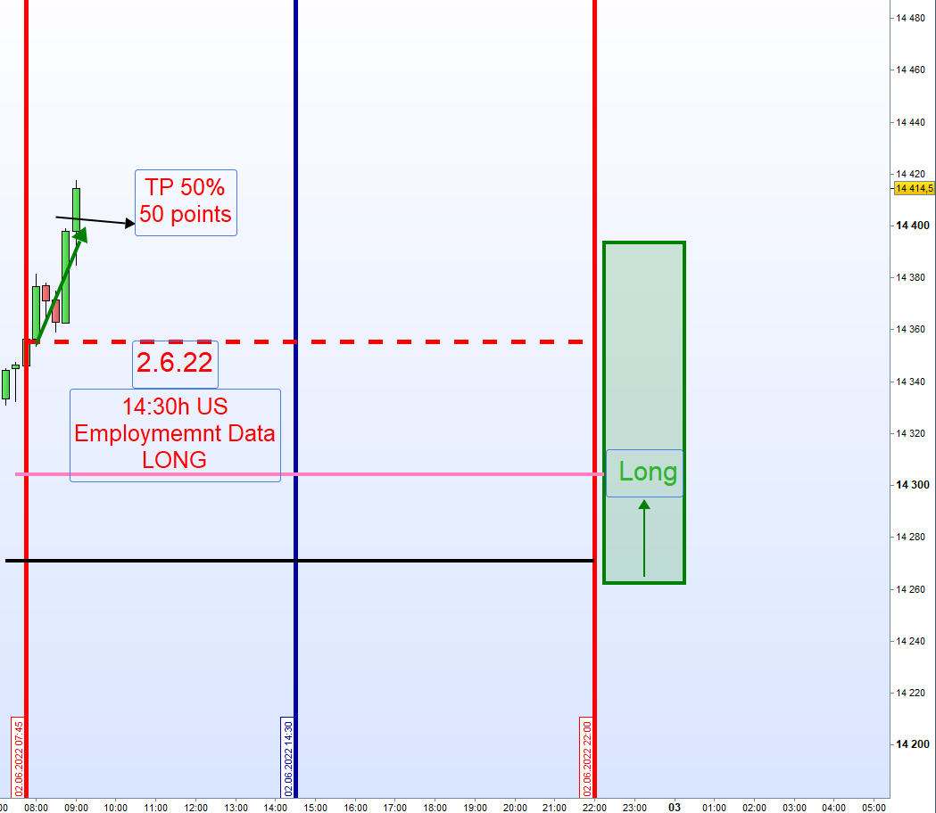 Entrada inmediata en largo a las 8:00 horas si los futuros del DOW y el FDAX cotizan en positivo o si el precio supera el cierre del DAX (XETRA) a las 17:30 horas del día anterior.