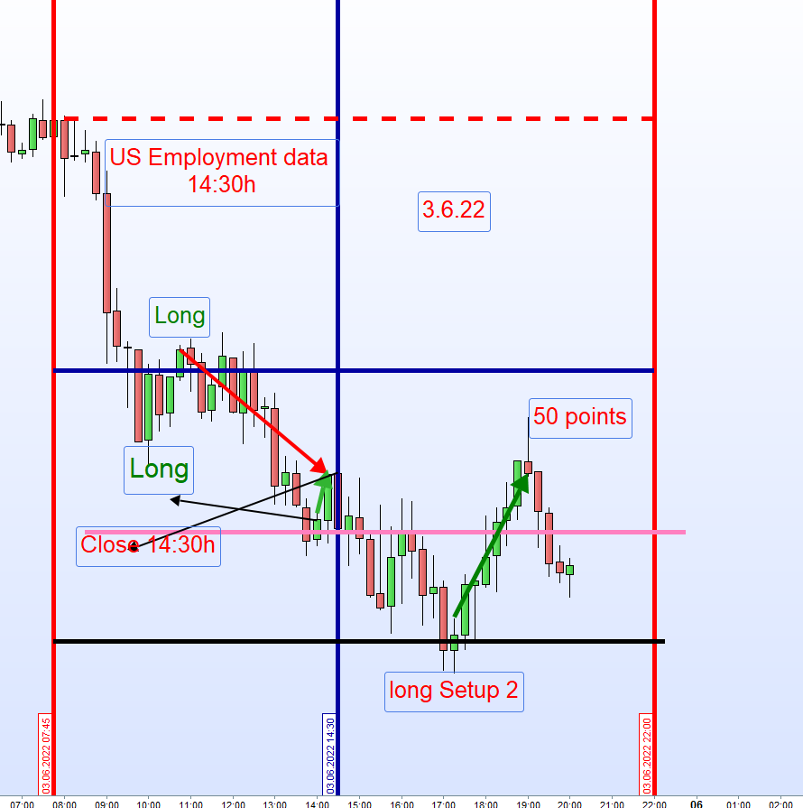 Si no se cumplen estas condiciones, espere a la apertura de la bolsa a las 9:00 horas y a la vela de inversión larga. Esta entrada es entonces la primera zona larga.