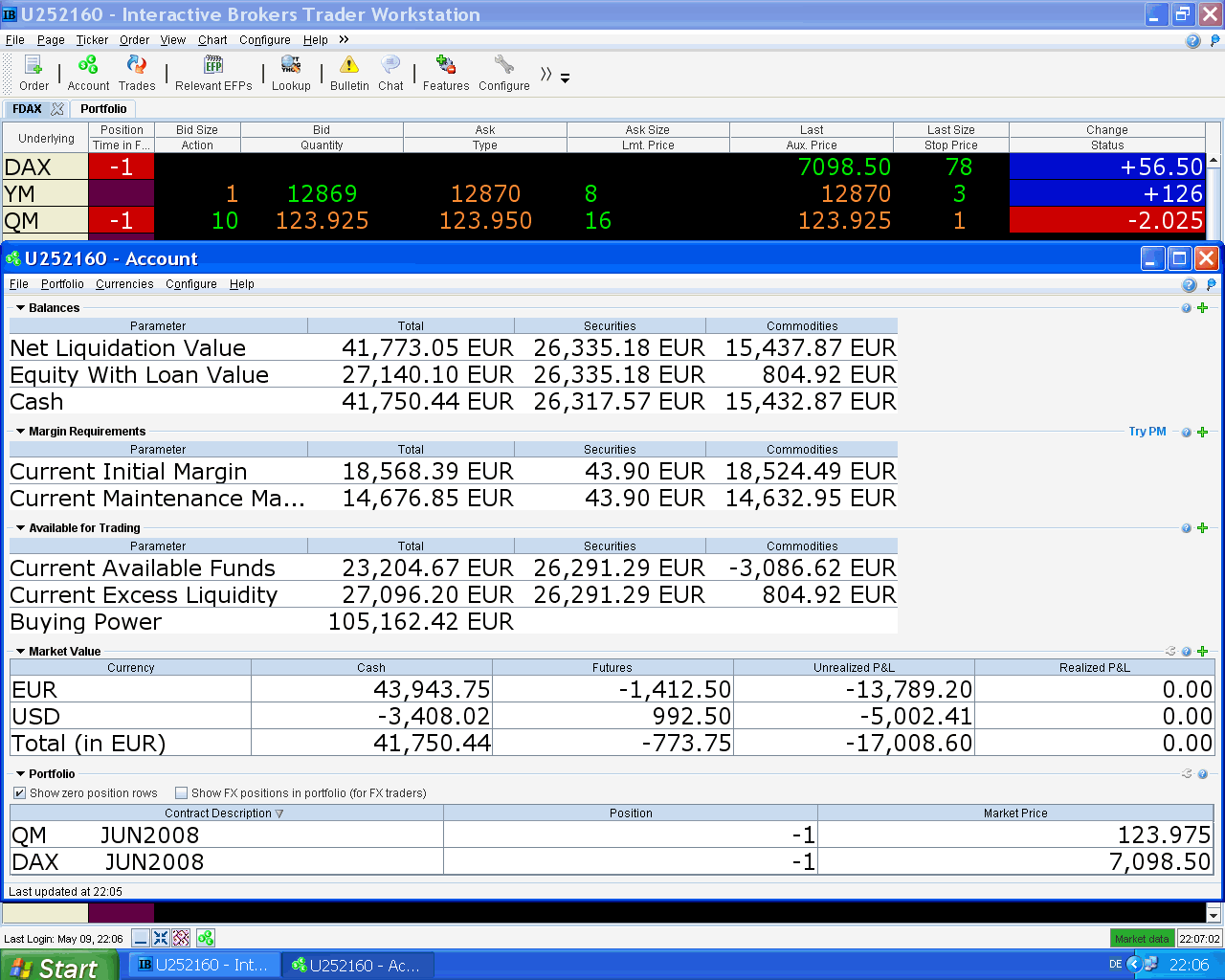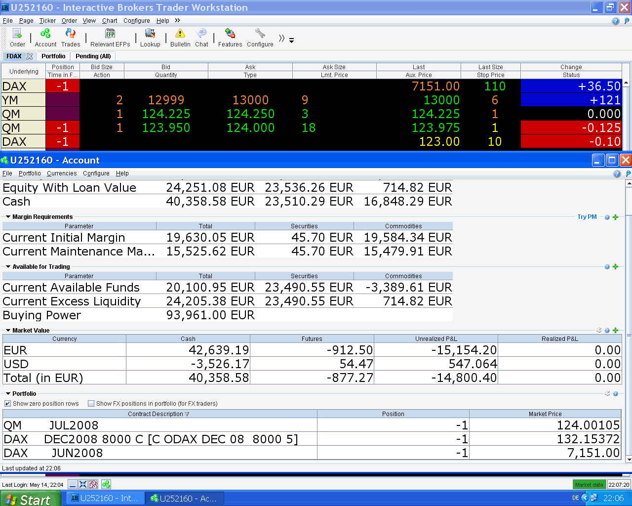 el contrato del petróleo es pequeño comparado con el del DAX y como aún sigo pensando que si el primero sube a 150 $ o más bajará, por lo menos algo, el segundo, no creo que vaya a tener problemas con las garantías en ese caso.