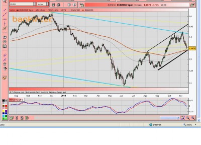 Bueno, pues el euro podría estar formando un suelo. Si consigue superar la directriz bajista es probable que vuelva a buscar niveles de 1.38