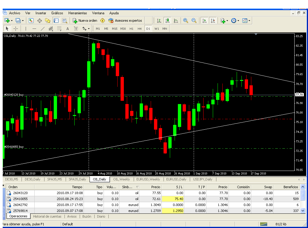 Tengo puesto un stop a la segunda posición tomada en el oil al igual que en el eurus.
