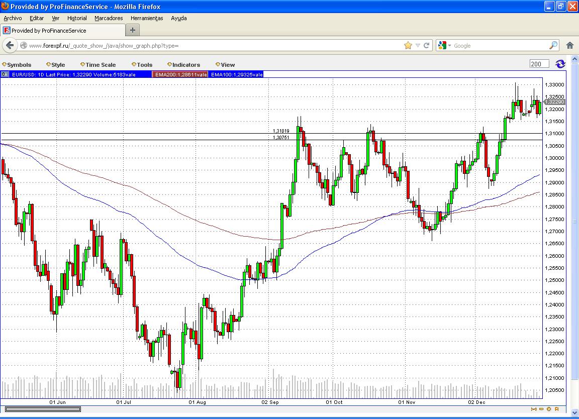 Yo espero un retroceso a la zona de 1.3080 para ver nuevamente un impulso alcista hacia la zona de 1.35 para las próximas sesiones y primeras del 2013, esa es mi perspectiva.