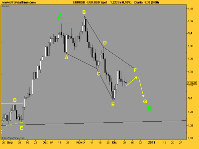 Si nos fijamos desde los mínimos de noviembre (que en realidad serian los máximos) el euro-dólar ha desplegado un segmento alcista y a simple vista uno diría que se trata de un impulso y no de una corrección.