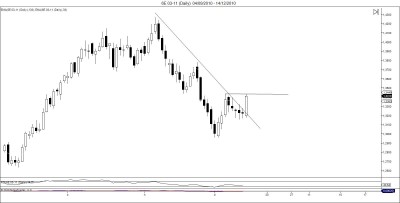 Una posible estrategia sería tomar posiciones alcistas (en realidad bajistas) en la zona de fluctuación de retroceso entre el 40 y 60% del impulso alcista es decir entre los niveles 1.3760 y 1.3960 con stop en los mínimos de noviembre a 1.4290
