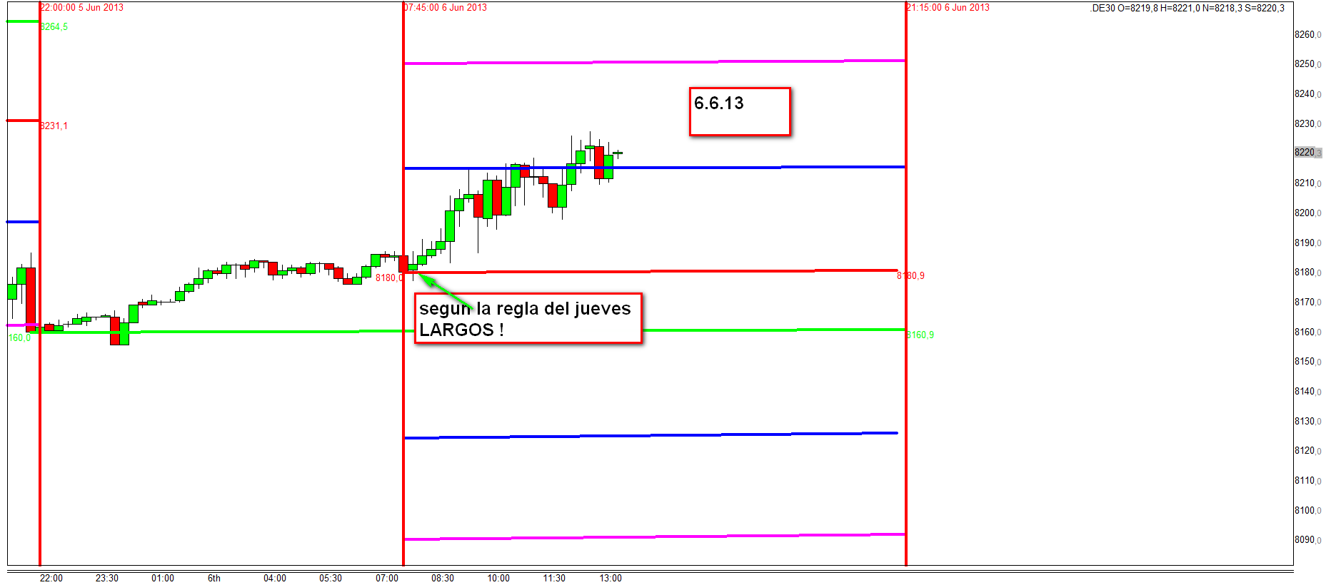 Como todos los Jueves buscamos largos bien directamente a la apertura si los DJIA FUT cotizan en alza o debajo la apertura si los DJIA FUT son neutros/negativos y empiezan a subir.