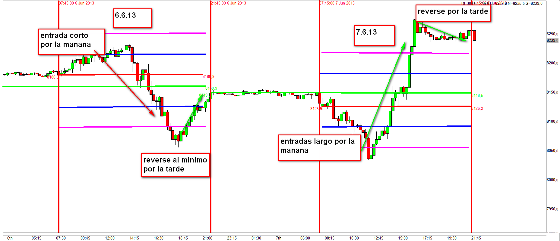 Tengo duda en lo relativo a los dobles huecos, que todavía no aplico. Utilizo el futuro del dax para marcar las zonas. Por ahora lo hago así, pero opero cfds, claro. Ahora mismo están casi ajustados al andar cerca del vencimiento. Para aplicar estrategias con los dobles huecos tengo la duda de como situar el nivel de cierre del dax contado. Si utilizo el futuro para marcar las zonas, supongo que tengo que utilizar el nivel del futuro del dax al cierre de la vela de las 17.35 horas? y con esos niveles, cogidos TODOS del futuro, ¿puedo obtener los dobles huecos?