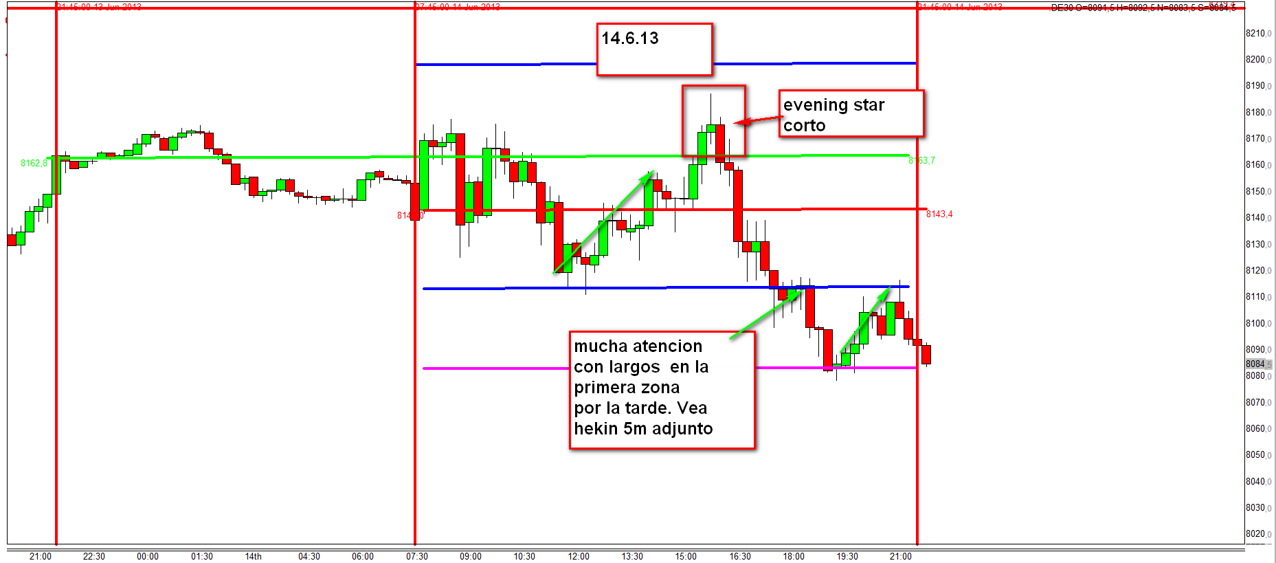 cuidado con la apertura. Doble hueco , jueves ..... Esto no significa que el precio no pueda bajar mas. Entrada largo solamente con heikin ashi 5 minutos de DE30 y US30.