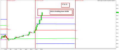 Los DJIA FUT no deben cotizar en contra del cierre. Tienen que acompanar o mas bien liderar el cierre. Si la posición no es cerrada con beneficios y posteriormente el precio llega a la primera zona de acción se abre otra posición con el doble de contratos. Entonces se aplicará el time stop.