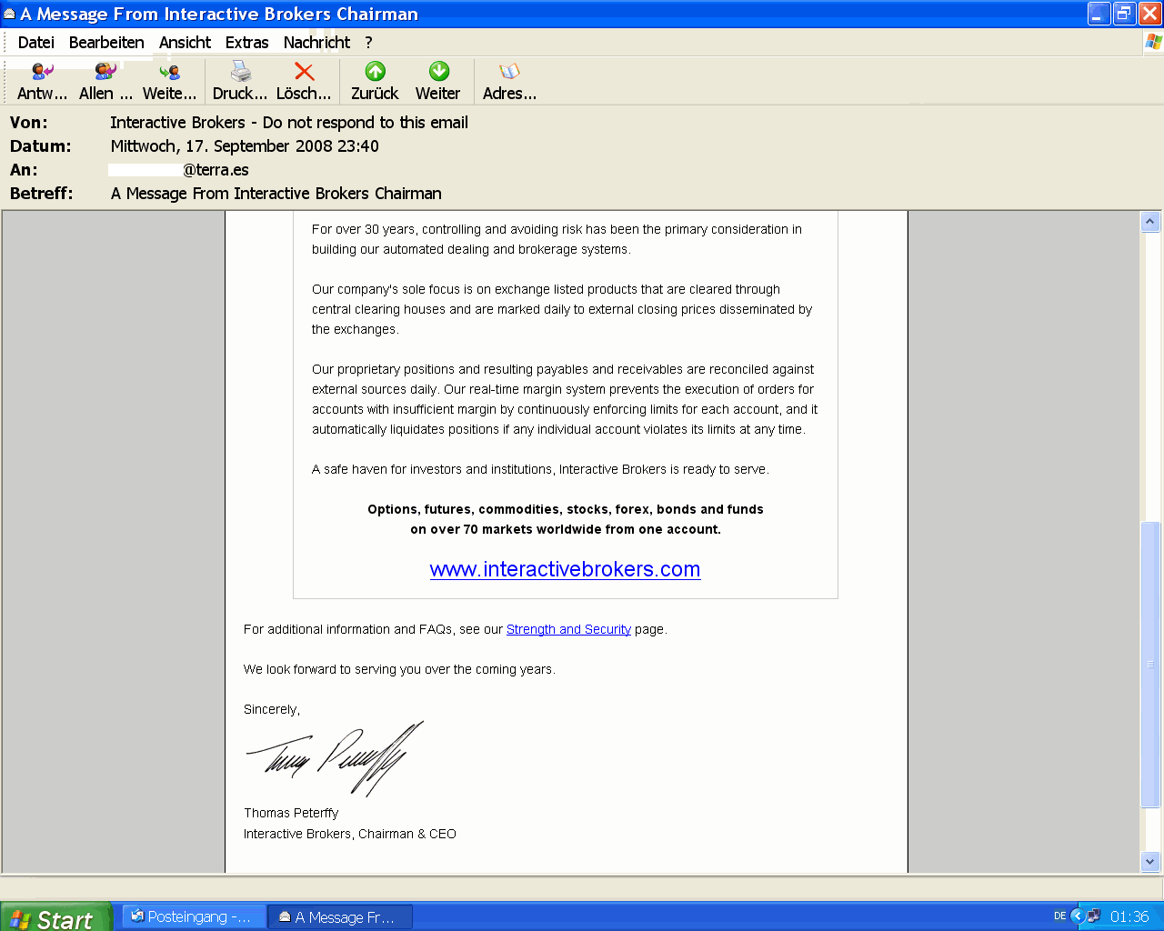 Como los de Interactive Brokers leen en el foro se enteraron de que algunos empiezan a preocuparse por mi dinero y reaccionaron enseguida, acabo de recibir este e-mail