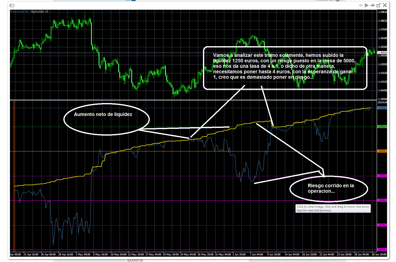 Nada mas, ademas, ten en cuenta, que en tus grafico, que tu no dejas nunca la liquidez mayor que el balance, por lo que siempre estas jugando con tu dinero, no con el del broker, y las pocas veces que te ha sucedido (liquidez> balance), no las has aprovechado, bien sea por despiste o por cualquier otra cosa, algun pico si que se ve de liquido mayor que el balance.