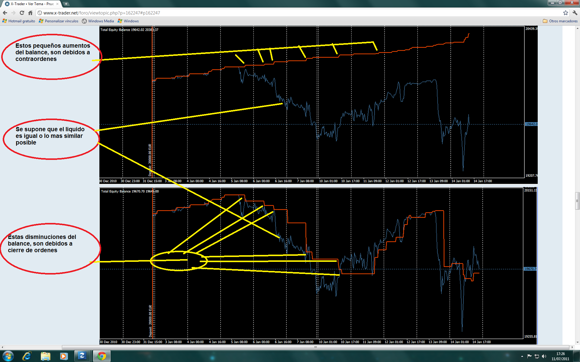 guevon escribió:En los dos graficos que te apunto, se ve como en uno de ellos el balance pega los mismos picos para arriba que el otro para abajo, y eso, si no es debido a lo que yo he dicho, (que en un caso pones una contraorden (de ahi la subidita para arriba del balance) y en el otro cierras la orden), si no es asi... yo no me explico como lo haces...