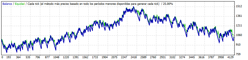 A partir de ese máximo relativo de la équity, el resto de máximos han sido siempre menores al máximo DD que ha tenido. Ha ido ganando unos 1.400 euros pero para llegar a ese beneficio la équity ha soportado antes pérdidas mayores que esos 1.400 euros.