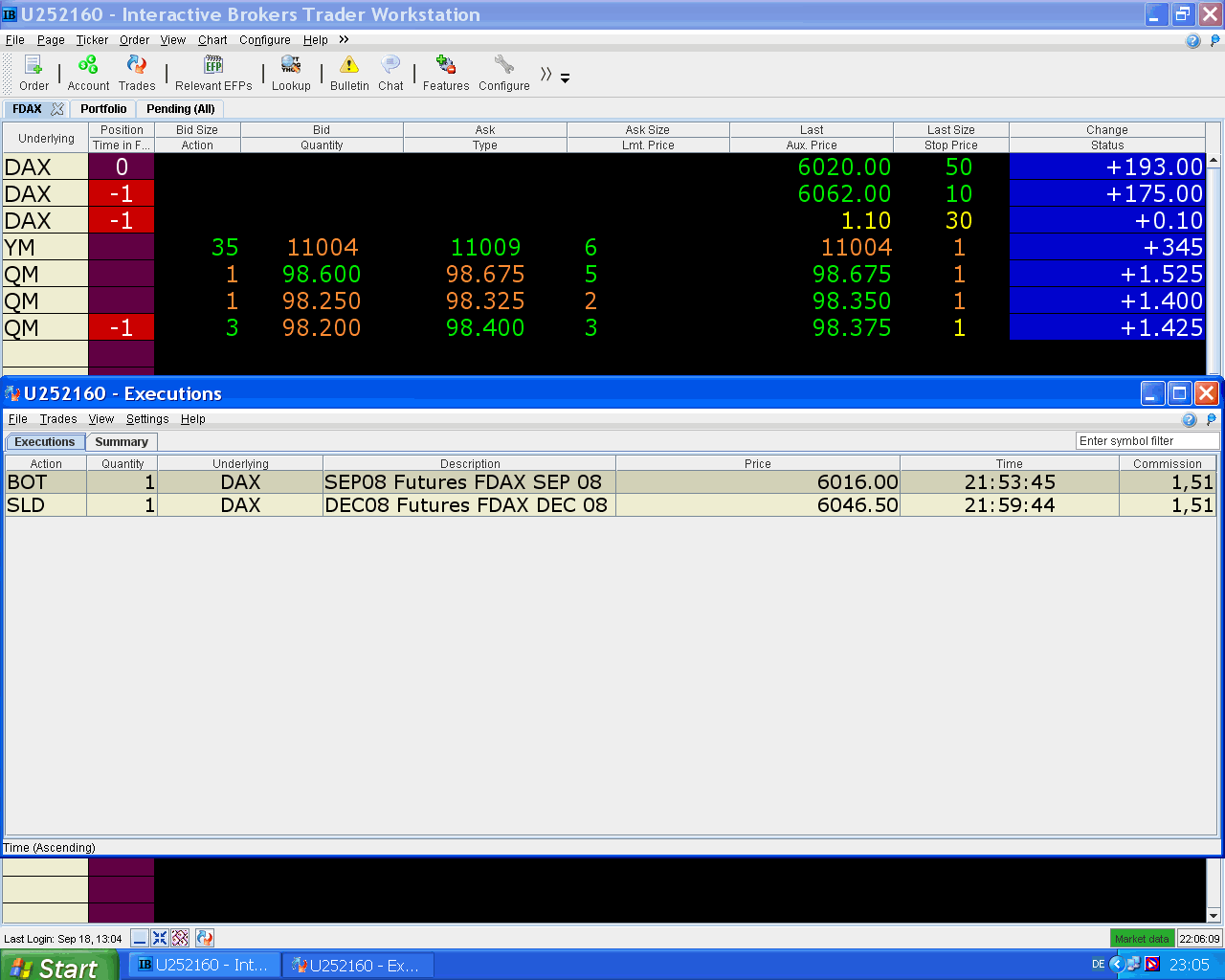 cambié de vencimiento en el DAX que expira mañana y sólo gano 30 puntos, no lo hice bien, lo tenía que haber hecho antes y no esperar tanto tiempo.