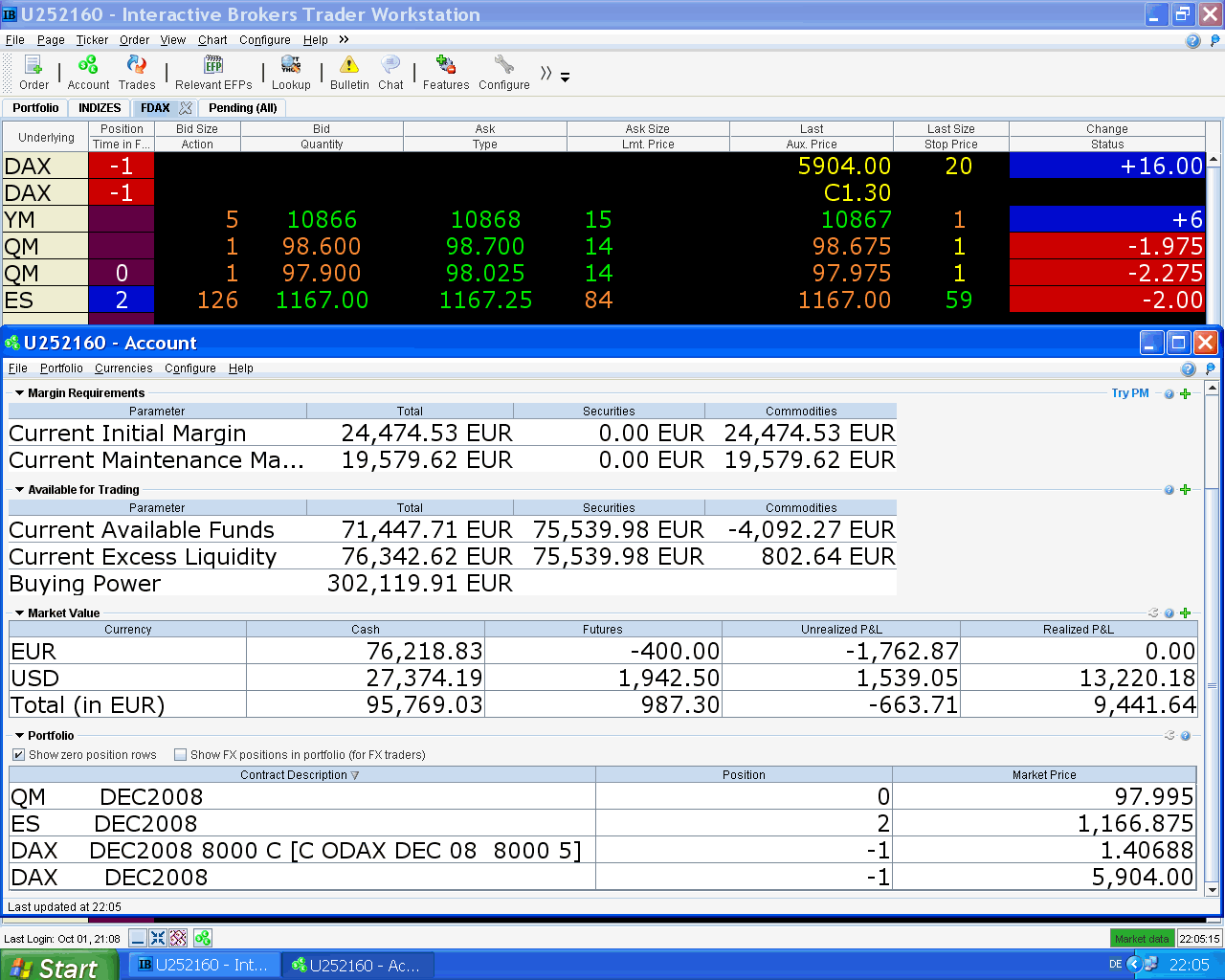 esperemos que entre hoy y mañana decidan los americanos si aprueban el paquete o no, yo creo que con un corto en el DAX y dos largos en el Mini S&P estoy bien posicionado, nervioso no estoy.