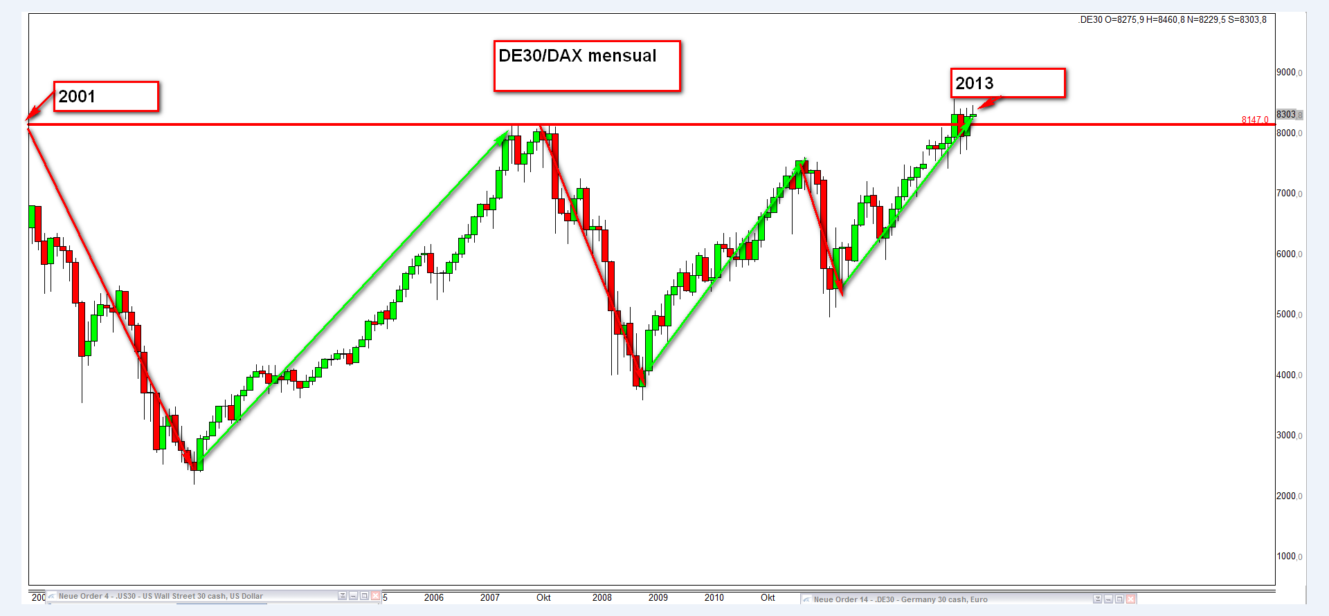 El DAX como indice ha sido creado en 1988 y desde entonces no ha promediado mas de un punto/dia. A partir de 2001 hasta la fecha no ha aumentado nada.