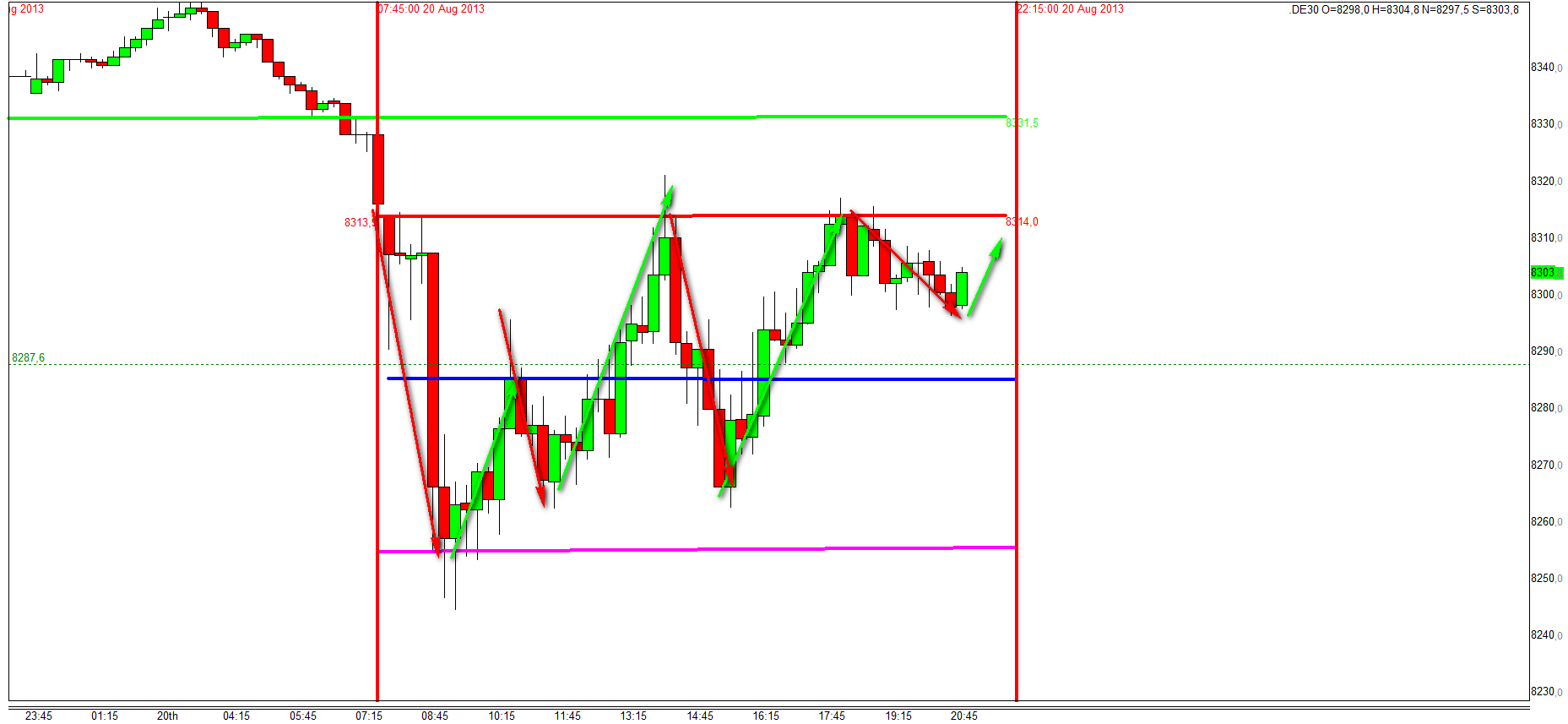 La cantidad de contratos tendra especial atencion y es logico de aumentarlas hacia el maximo y minimo del dia. Maximo y minimo lo observamos conforme a la volatiLidad del VDAX.