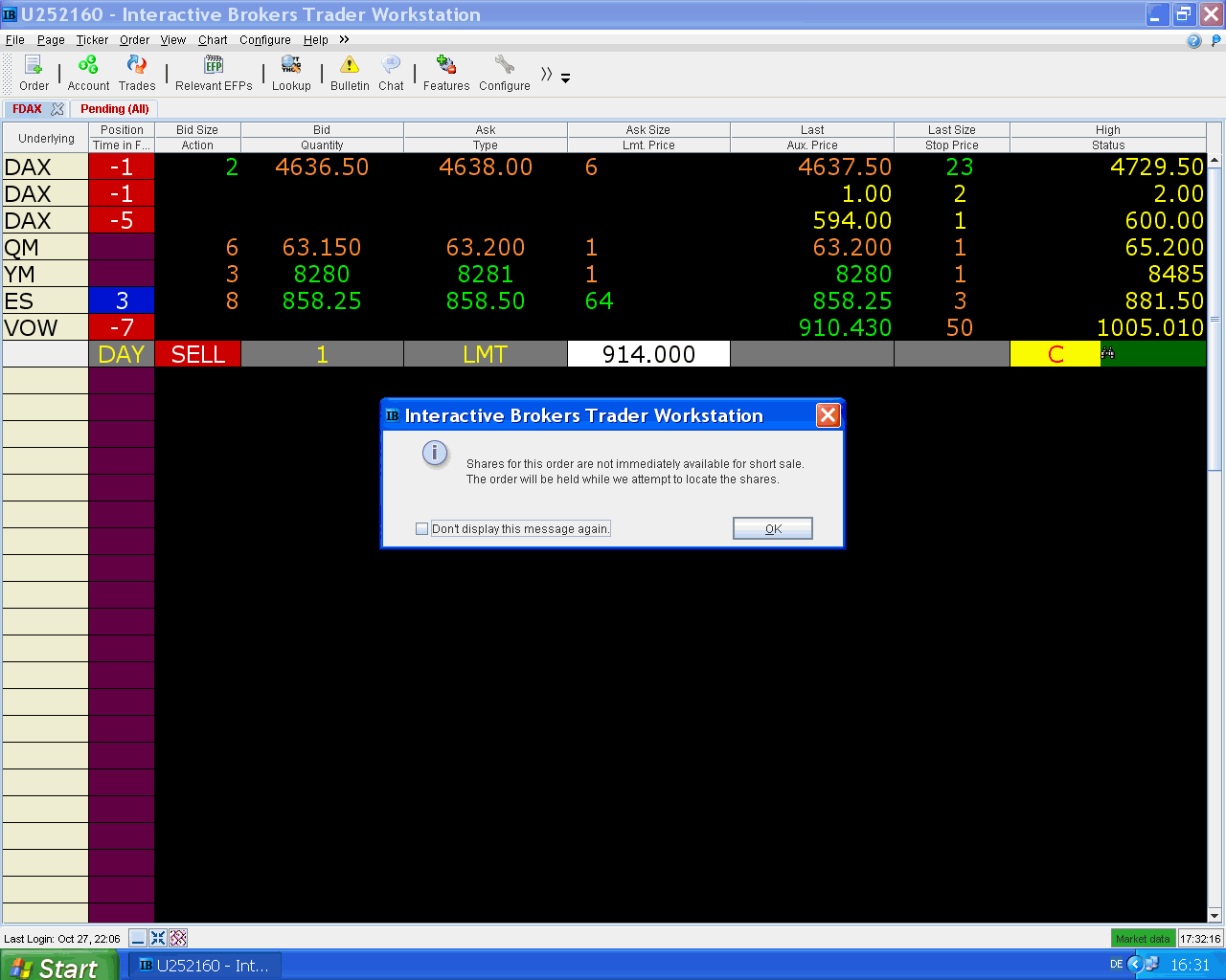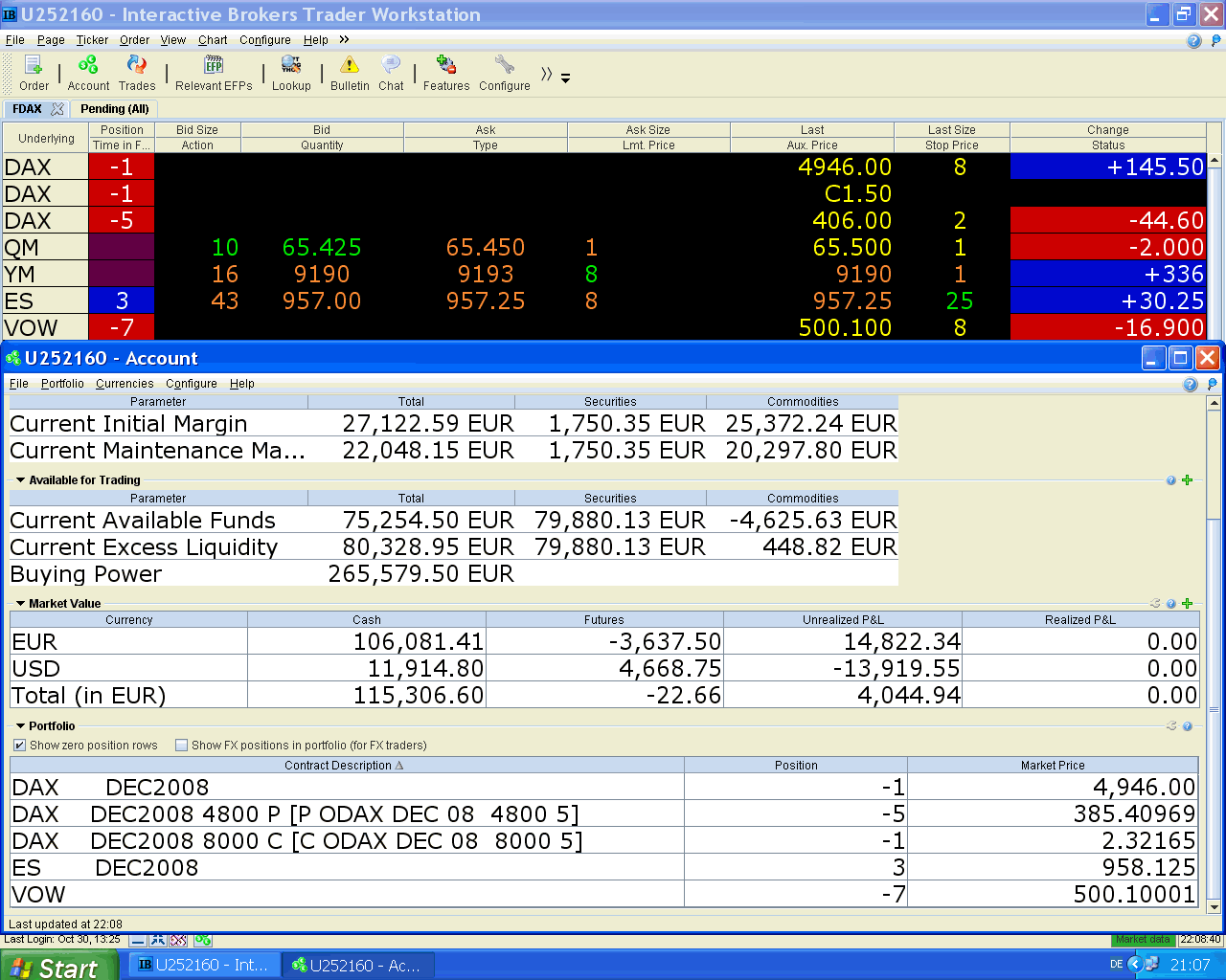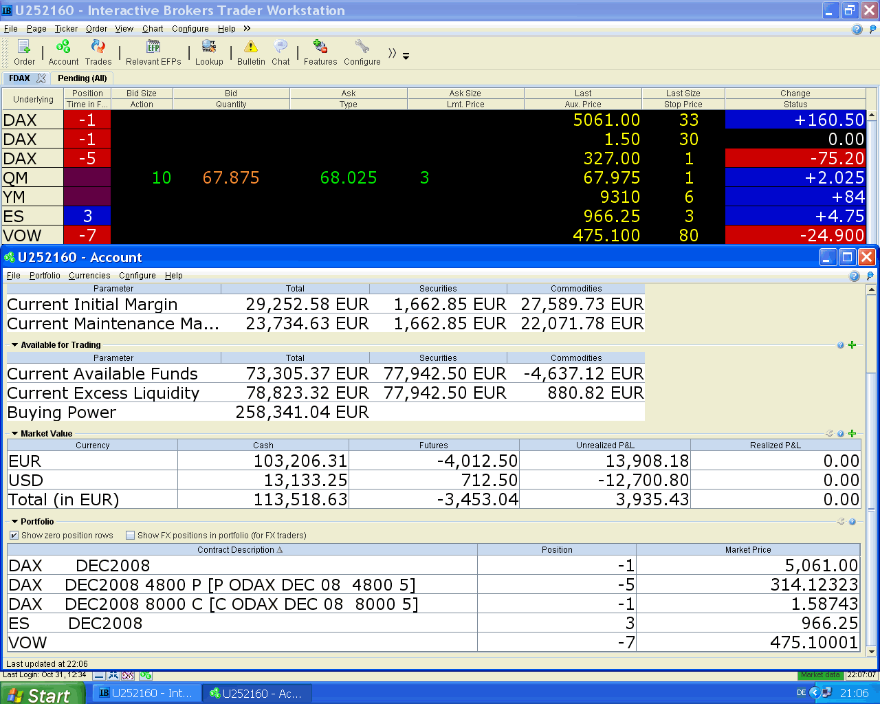 si el FDAX sube el 6 % y el Mini S&P menos del 4 %, cómo sucedió hoy, pierdo con el spread DAX / S&P, claro, pero eso no es ningún problema porque es un spread a muy largo plazo y seguro que llegarán muchos días en los que salga ganando.