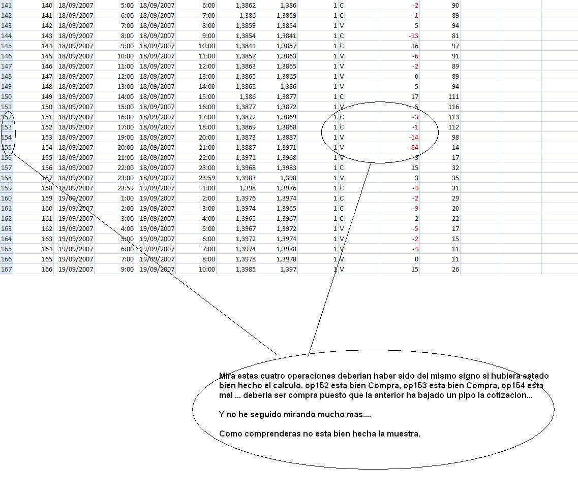Y ahi estoy con mi razonamiento anterior, si eso es asi (que no lo es), no hay mas que apostar al cambio de color despues de la primera vela de media hora para ganar unos pipos limpiamente, puesto que matematicamente el cambio de color nos dara mas pipos que el apostar al mismo color.