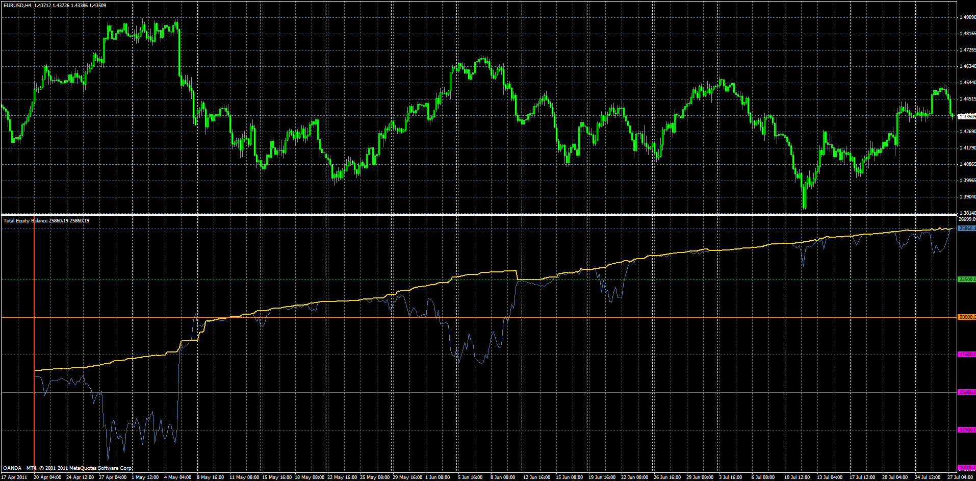 Desde el viernes de la semana pasada estamos operando posiciones de 0,12 lotes, es decir hemos vuelto a bajar el apalancamiento por operación. La experiencia de subir el lotaje por orden no ha sido satisfactoria, pero no sabemos si es por el apalancamiento o es por el comportamiento del mercado durante el mes de Julio. Con 0,12 hoy ha sido coser y cantar.