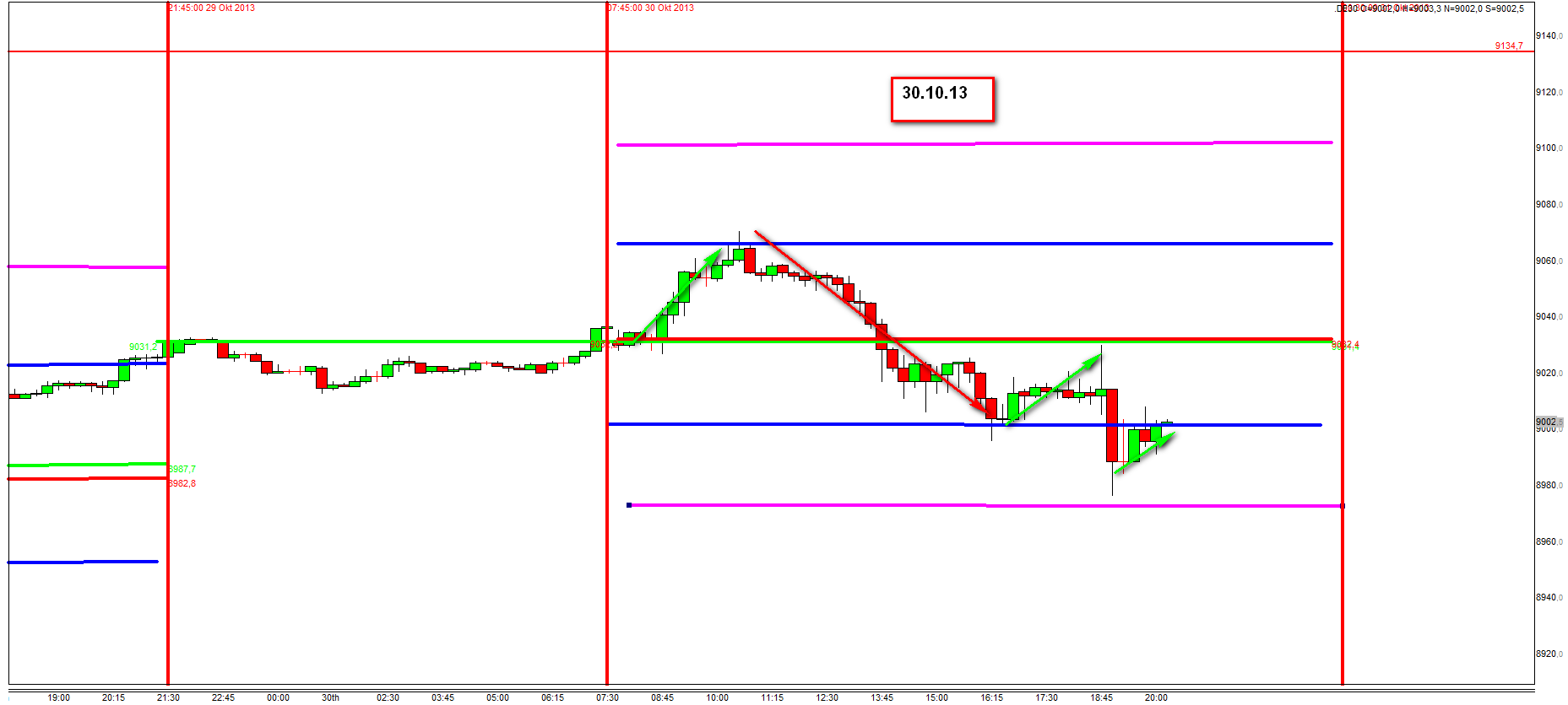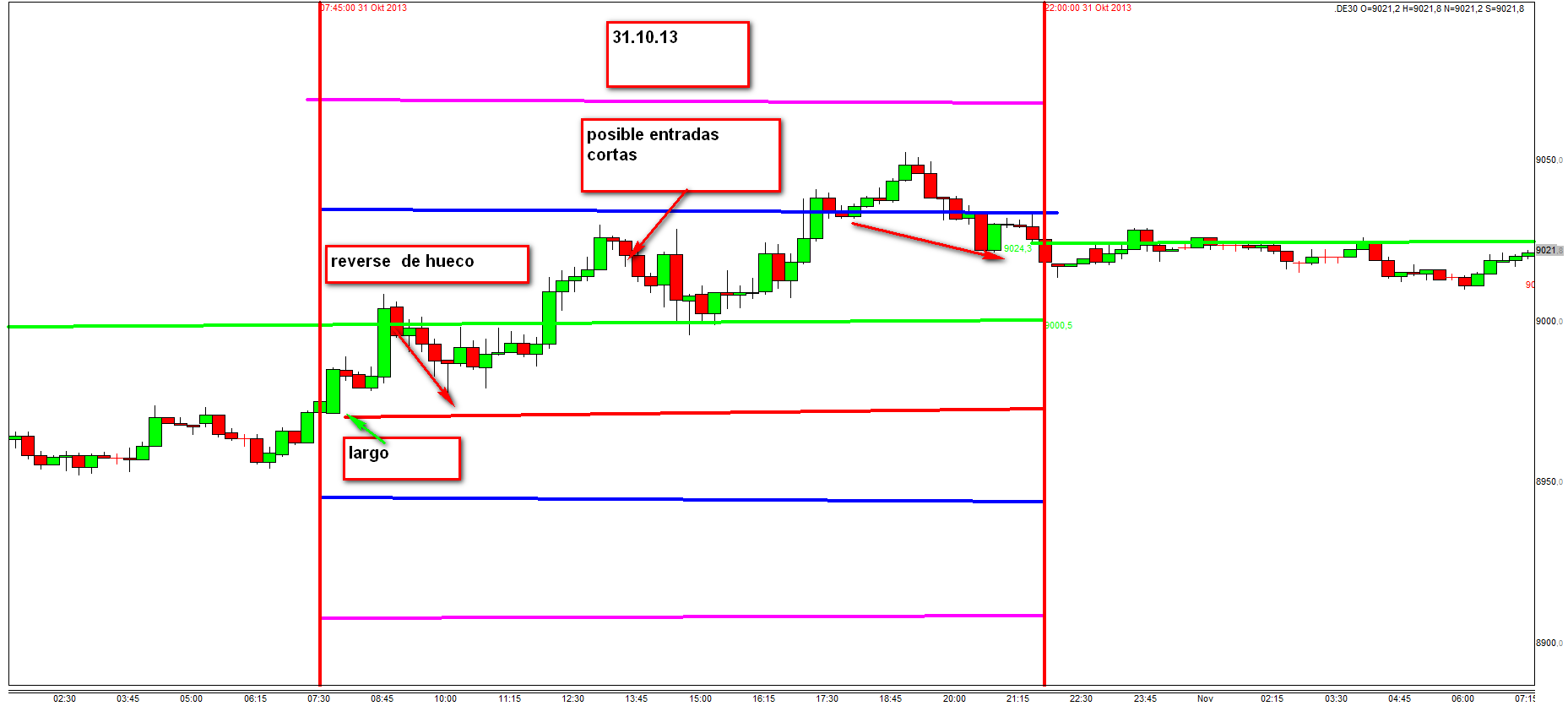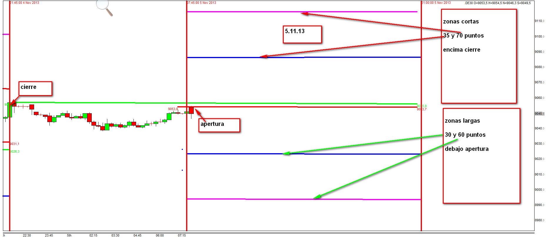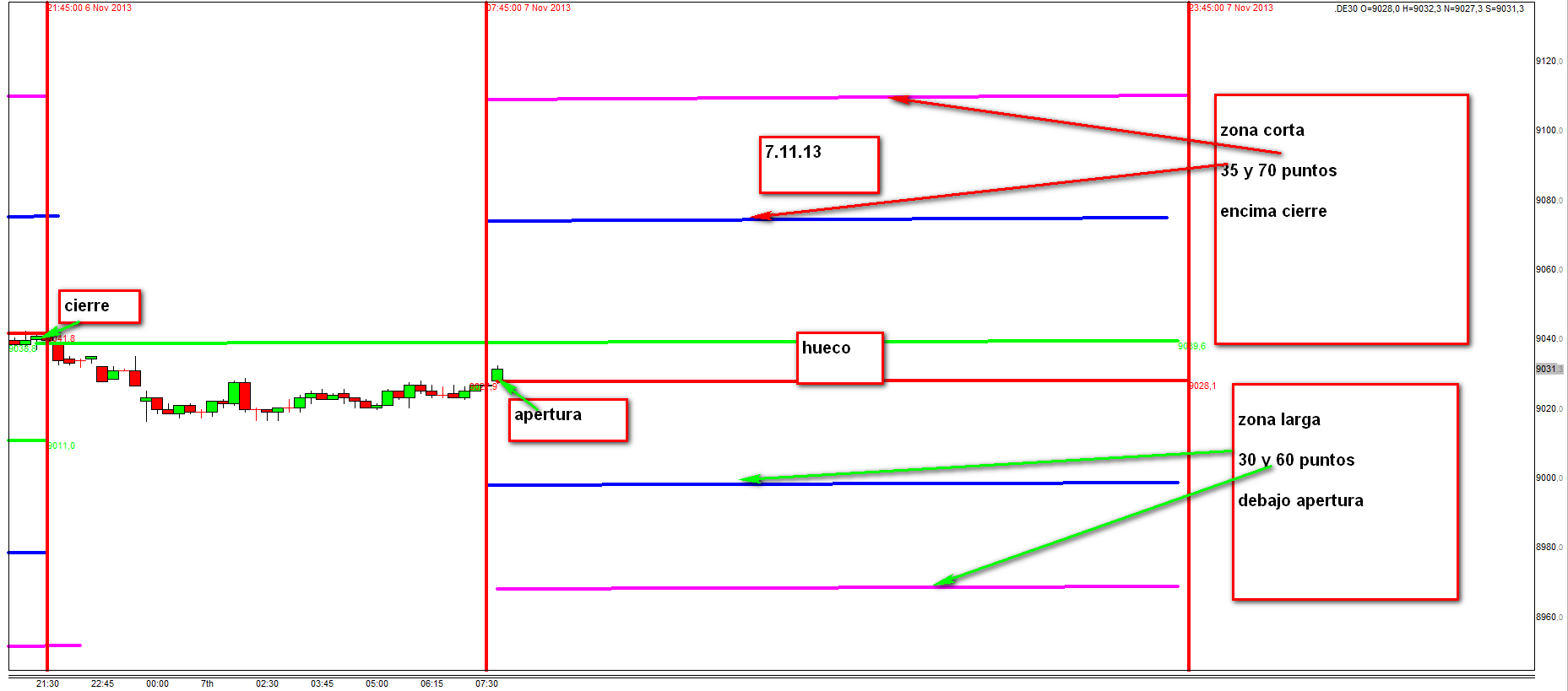 El cierre y apertura del dax lo tengo a 9030 y 9033 aproximadamente, teniendo la zona 1 de largos a 9000 .