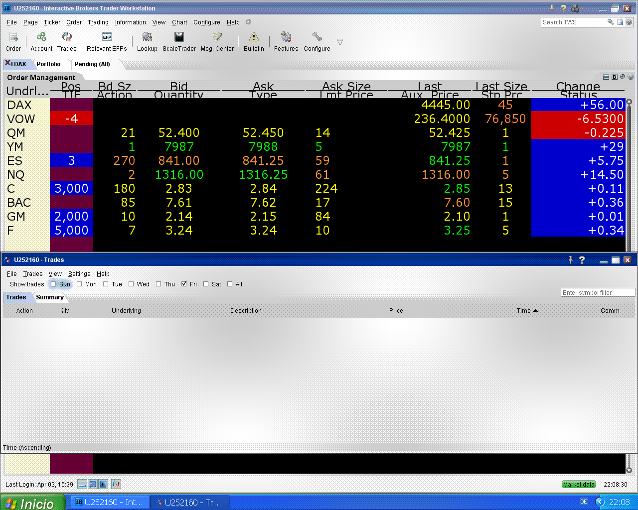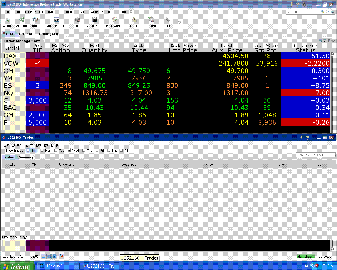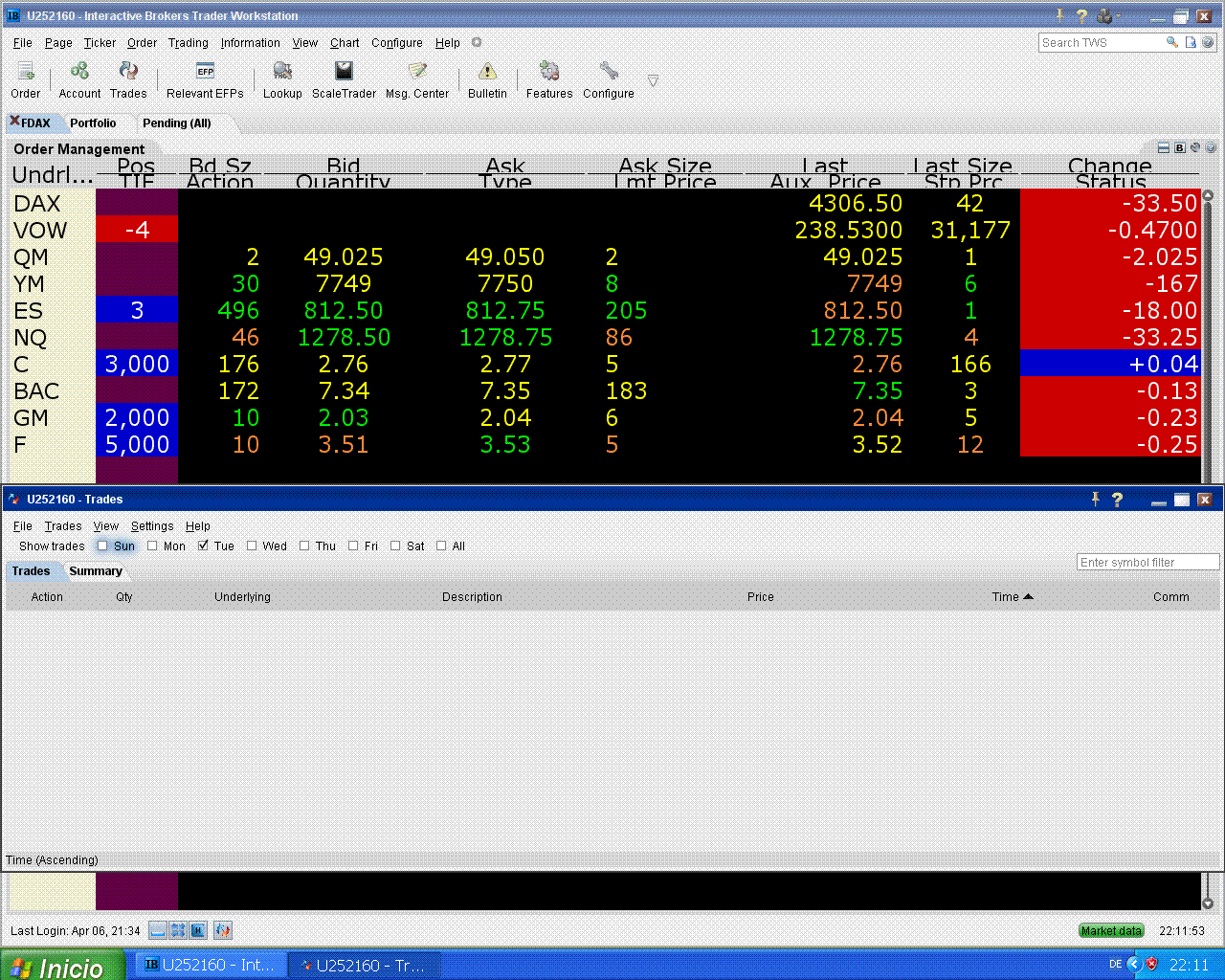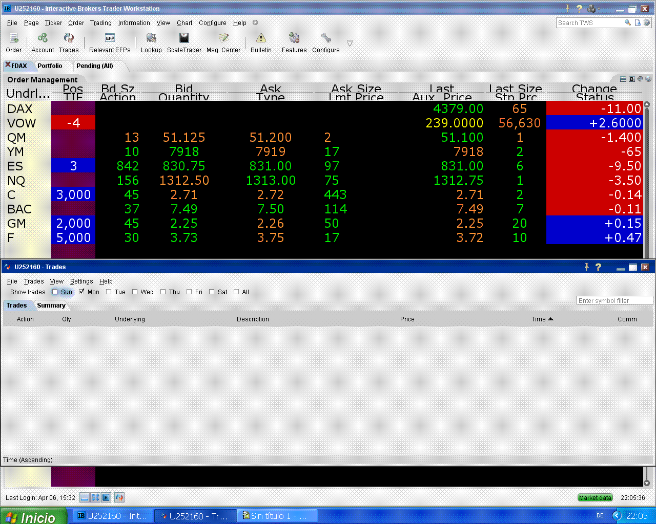 hoy me fallaron Citi y Ford pero subió el S&P, eso tampoco está mal.