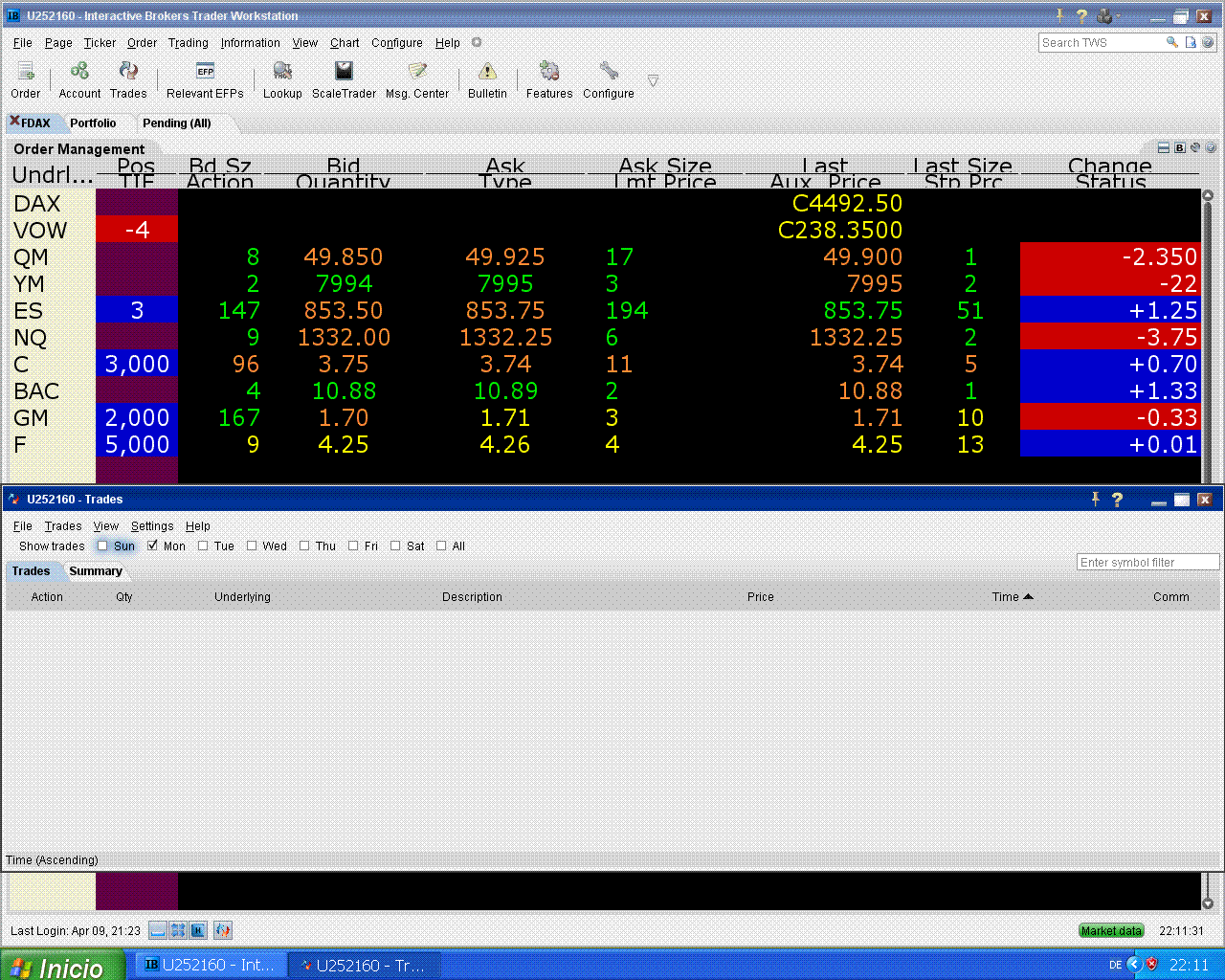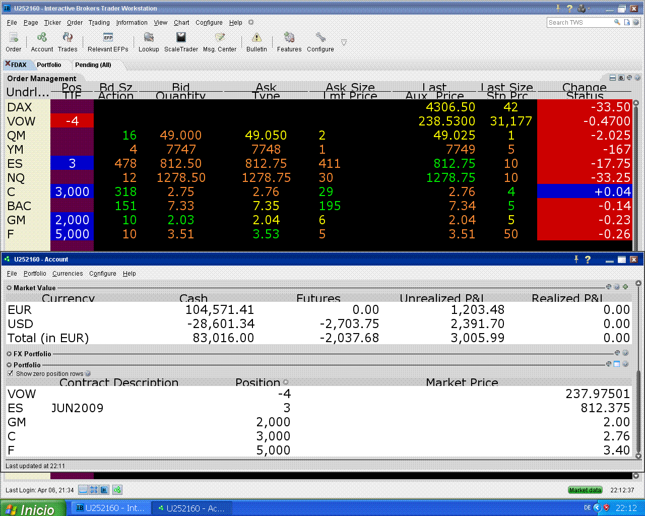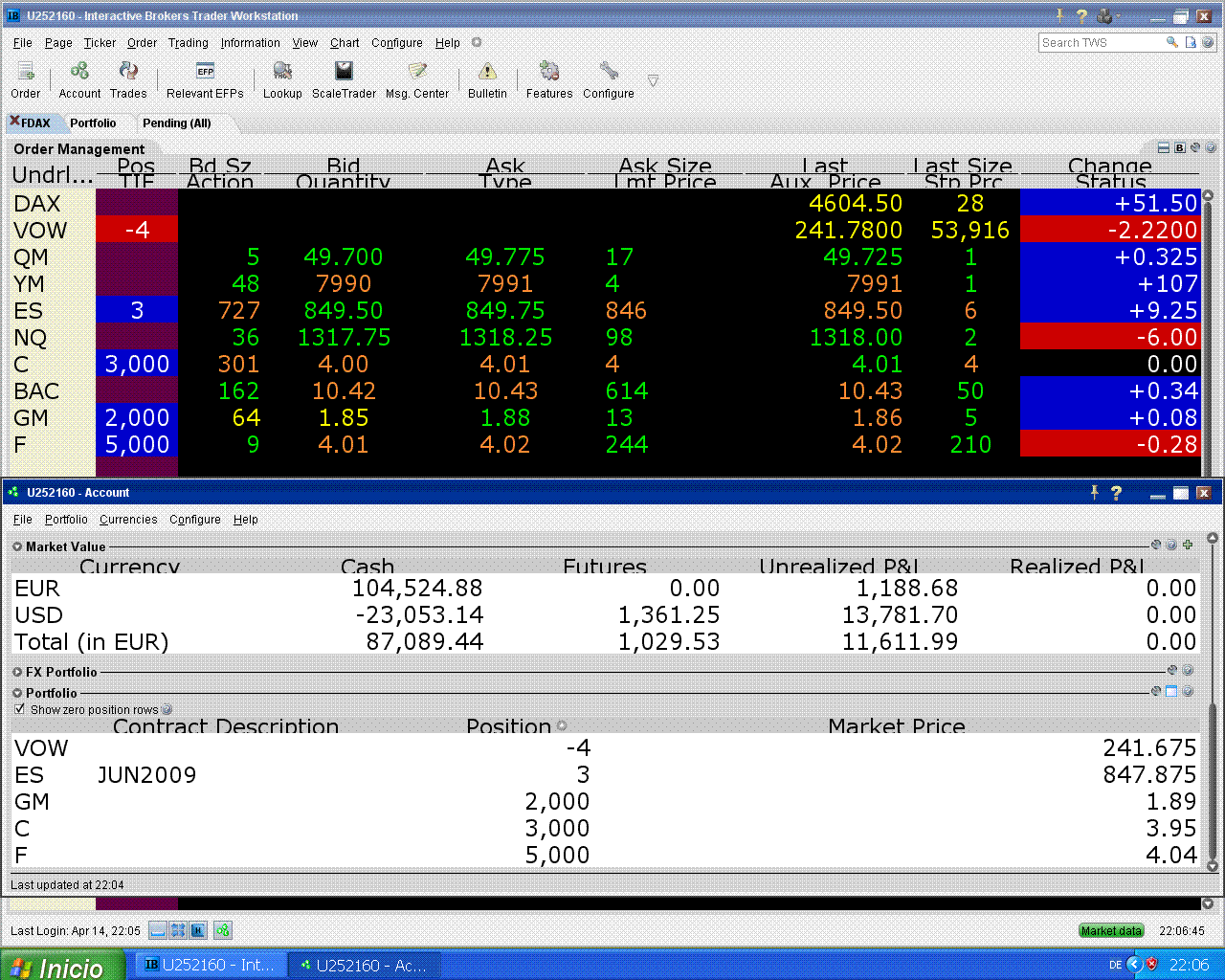 hoy me fallaron Citi y Ford pero subió el S&P, eso tampoco está mal.