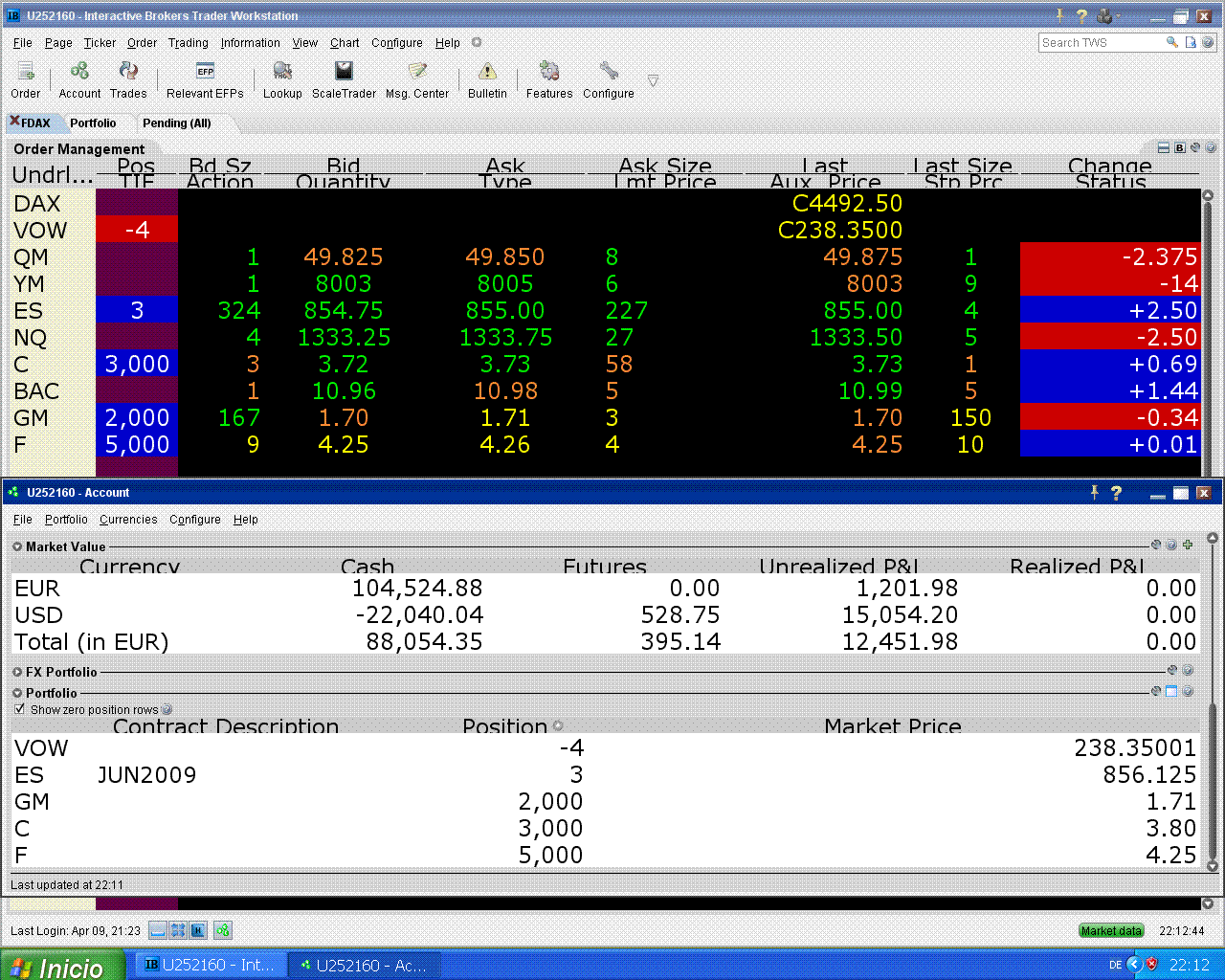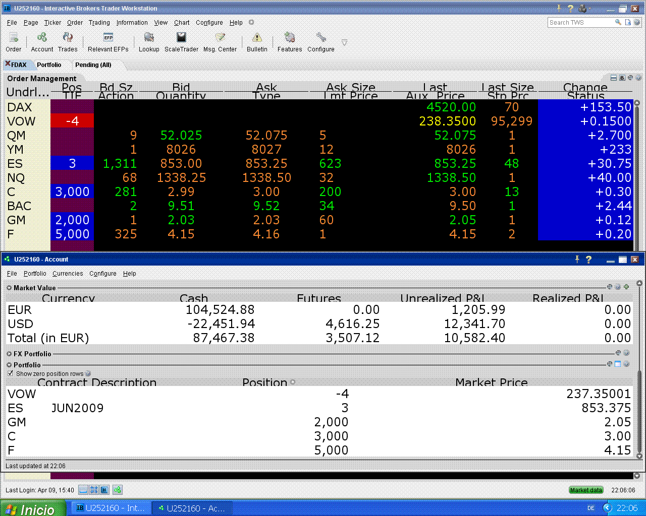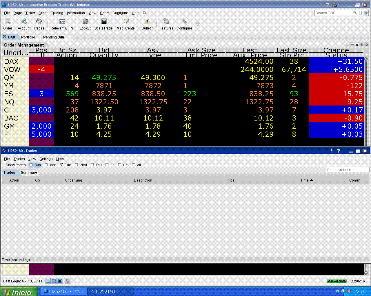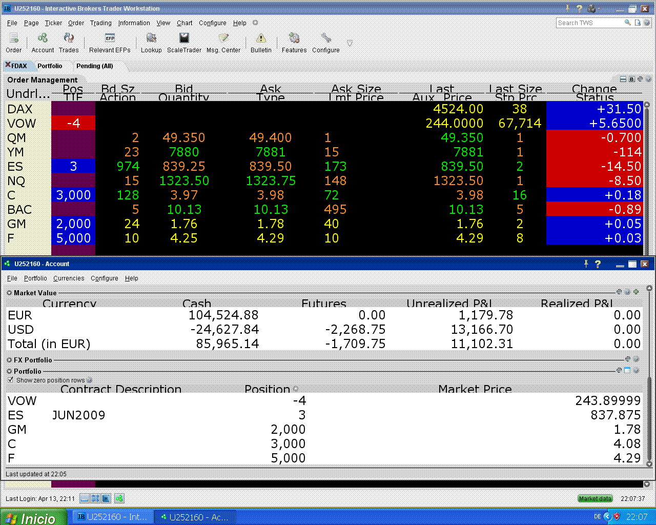 hoy me fallaron Citi y Ford pero subió el S&P, eso tampoco está mal.
