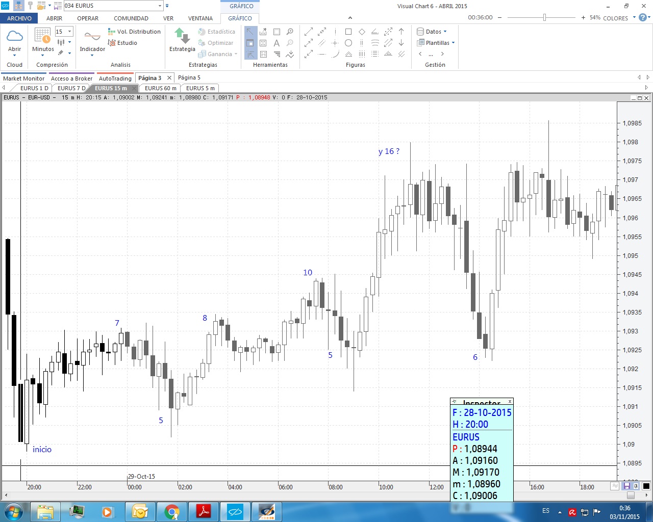 Me podrías contar las velas en 15 minutos de la subida del Eurus de hoy. Desde los mínimos del viernes, donde empezarías la cuenta? Y donde la terminarías?