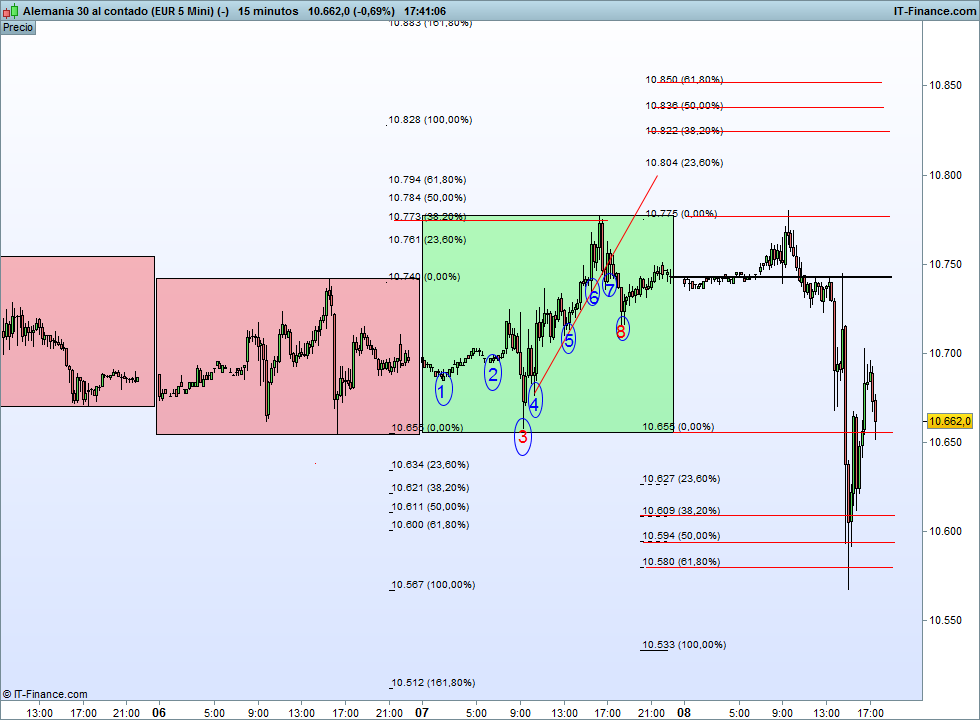 por ahora Dax no puede con 10700 que es 61,8 fibo