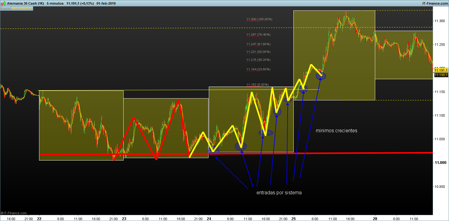- La segunda si, muy clara. La entrada exacta ¿cuando es? ¿cuando tenemos un mínimo mas alto y cierre de vela por encima de la media? Ay que me lio, ¿o cuando hace el maximo mas alto y esperamos al pullback?