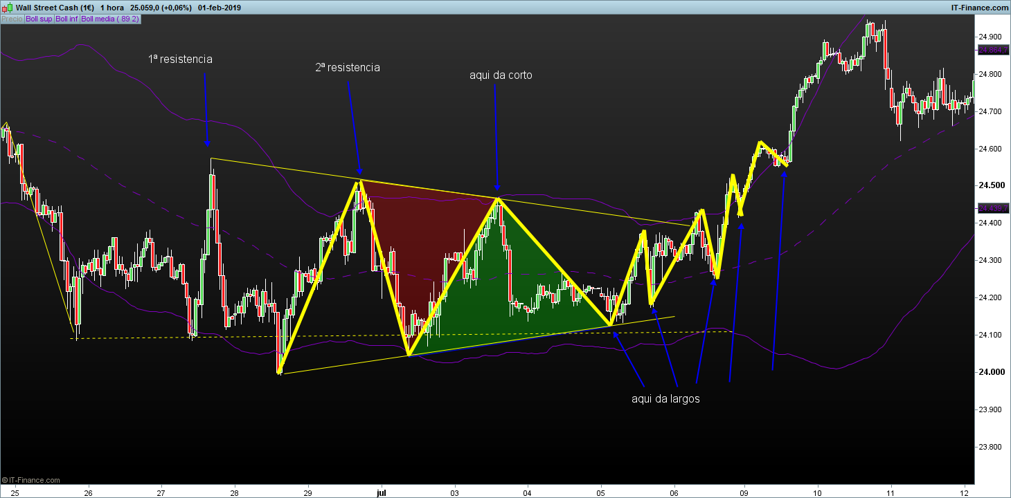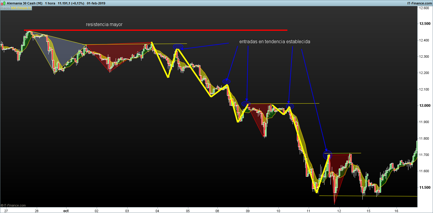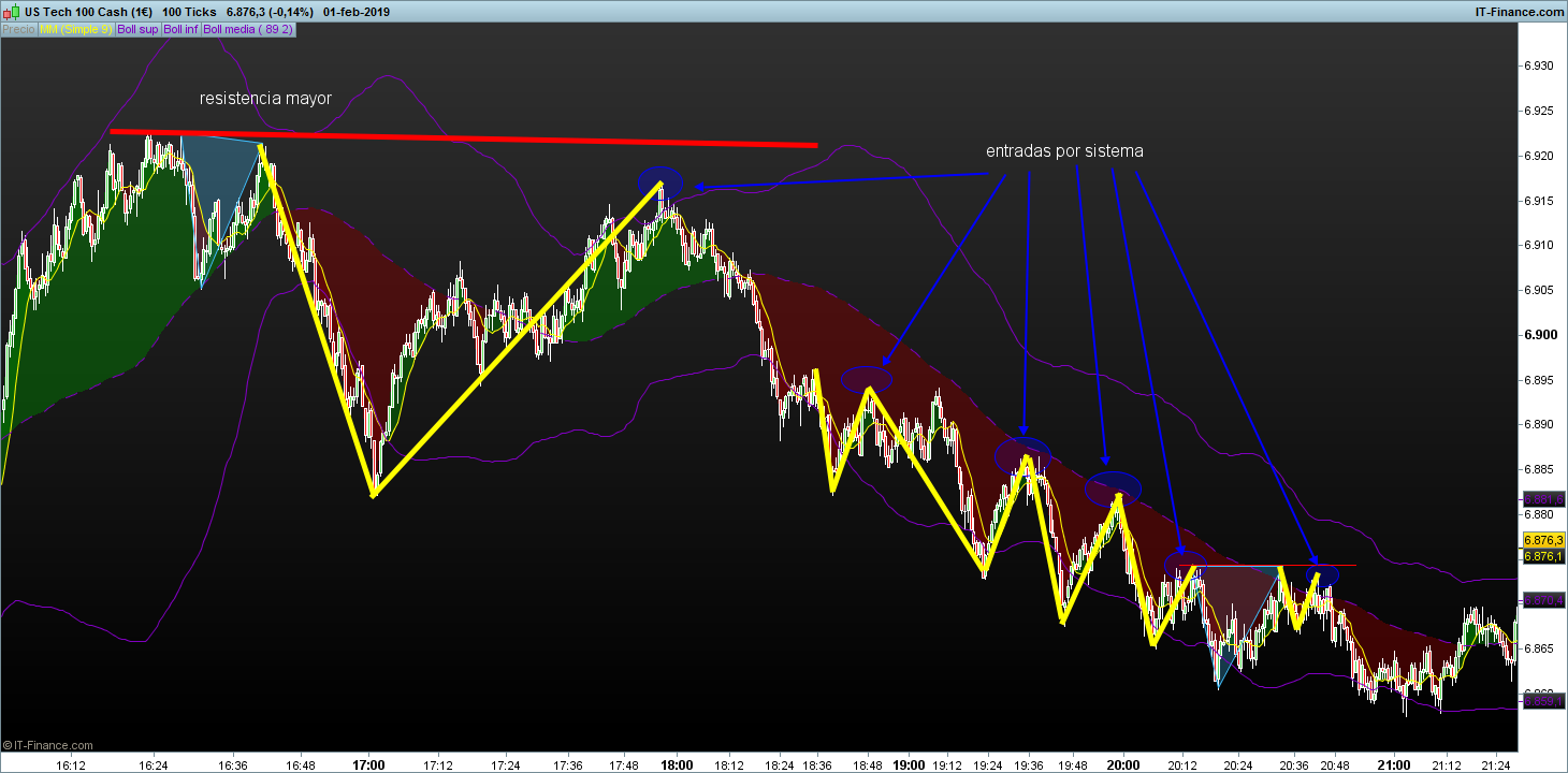 En rango horizontal la operativa trabaja con V o V invertidas, después de marcar una resistencia con dos toques a un mismo nivel o similar, al siguiente intento si forma una V con el ultimo segmento mas corto el sistema da entrada