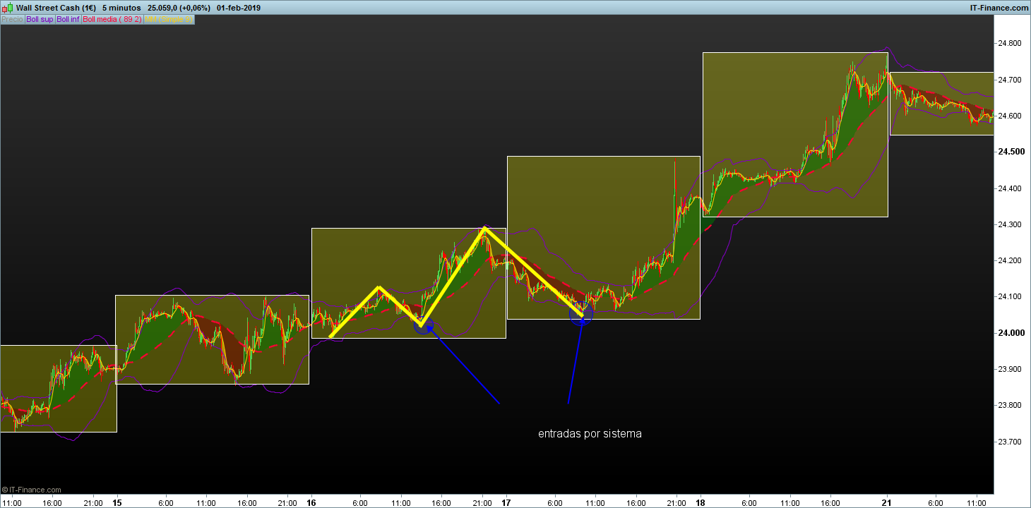 El sistema trabaja con volatilidades media-alta buscando el impulso, en volatilidad muy baja , aunque los patrones sigan dándose, es necesario apoyarse en otras estrategias o subir a timeframe de swing o bajar a 1 minuto porque los recorridos son mucho mas cortos