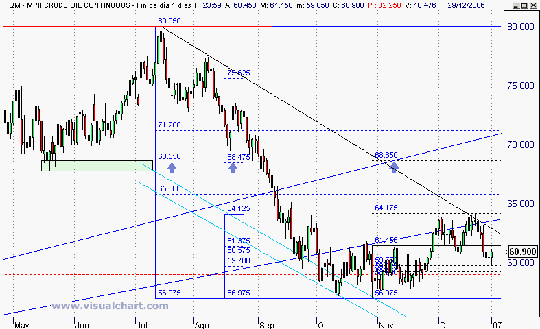Hemos de considerar ke estamos operando en futuros de entrega febrero, y ke pese al mes estacional alcista del contrato, éste no acaba de levantar cabeza.