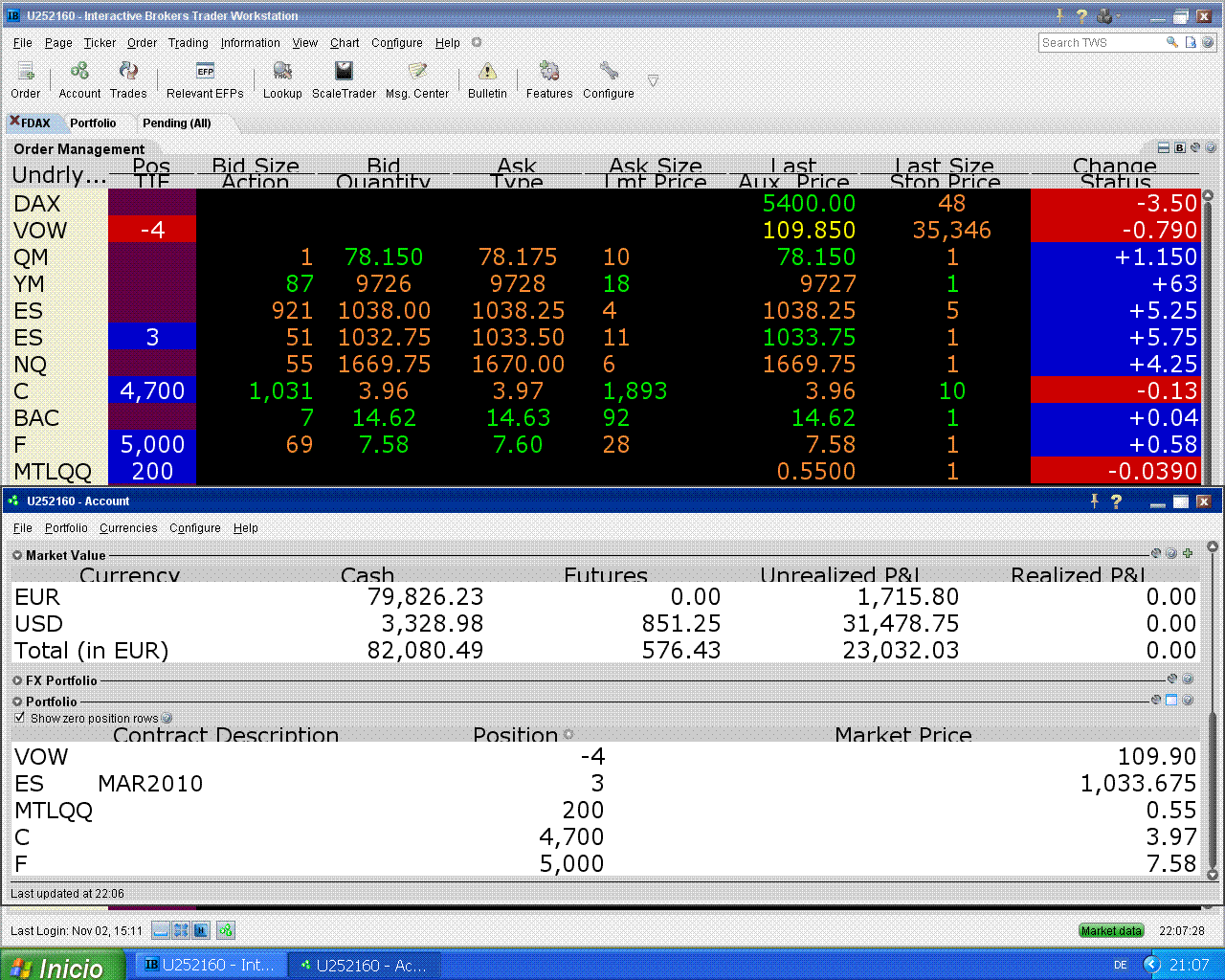 el viernes no pude colgar los extractos por falta de corriente eléctrica (yo vivo en una aldea en el monte), la verdad es que por el momento tampoco me hace mucha falta para operar, esto va bien y por mí puede seguir así.